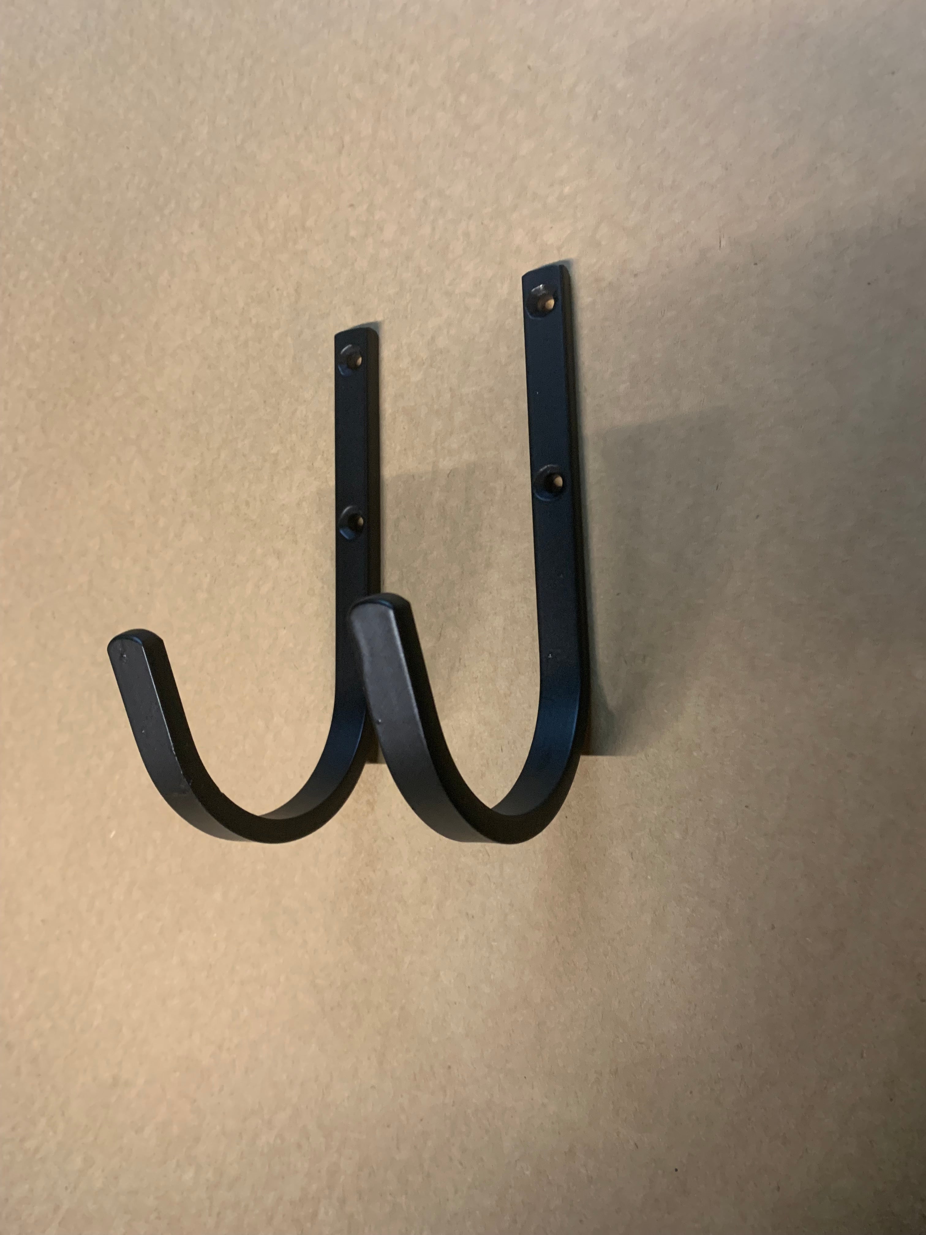 Discover the ideal rustic hook for hanging paddles, oars, or life jackets—its versatility knows no bounds! This meticulously handcrafted hook is made from sturdy 1/4" thick steel and is available in two widths: 1/2" and 1". Each hook features two pre-drilled holes for easy mounting.