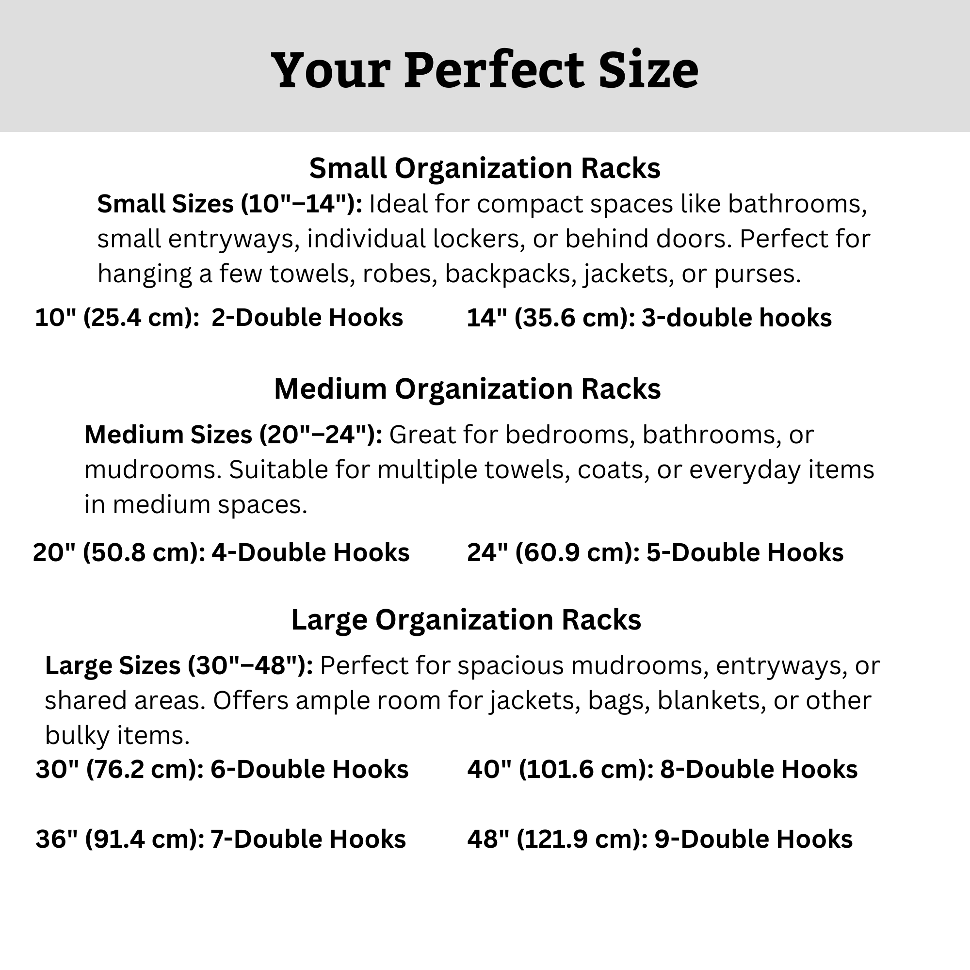 | 48" Length | 9 hooks |