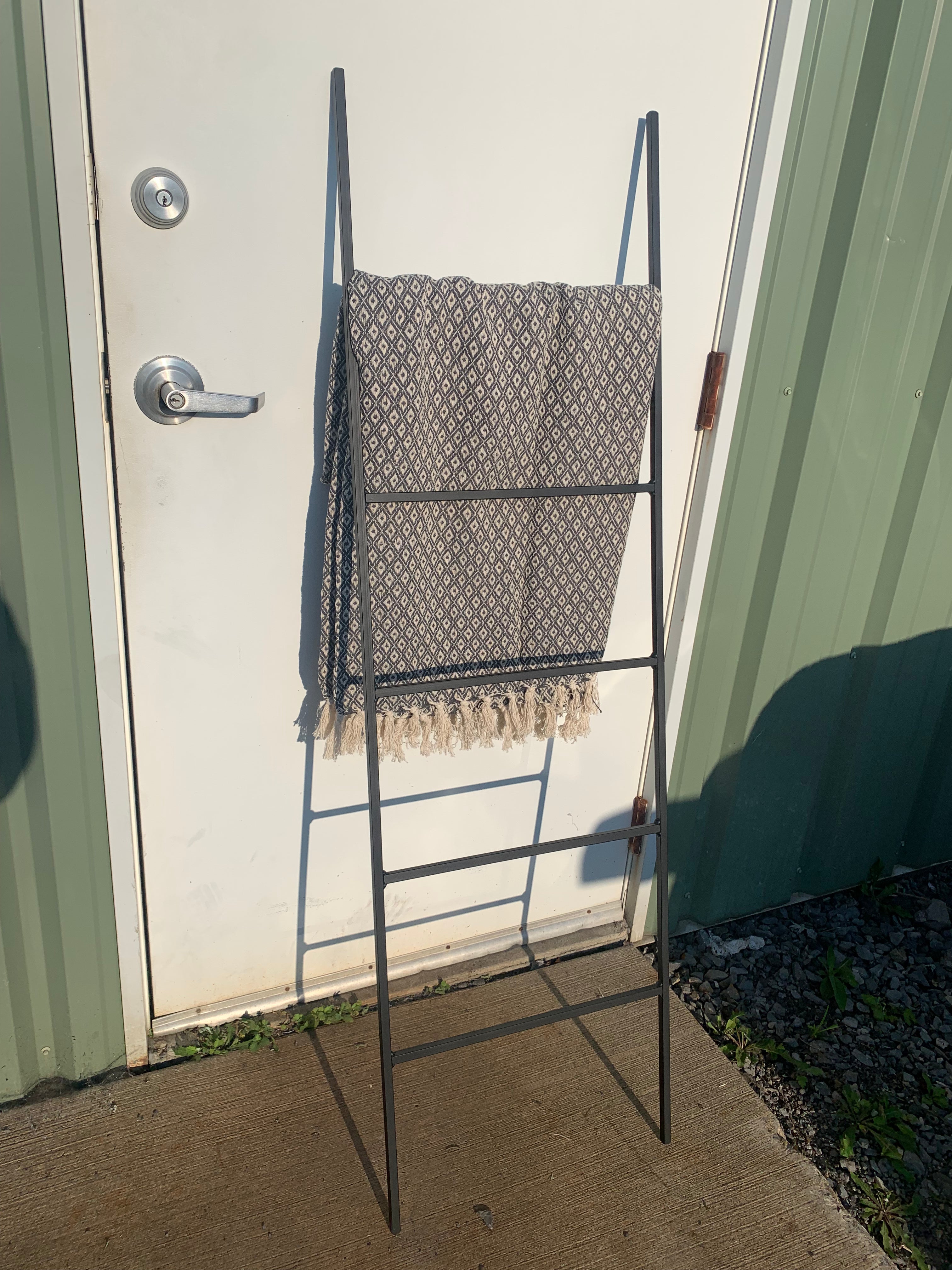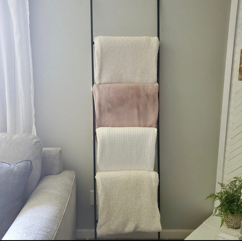 The Industrial Farm Co Lynn Ladder is the perfect ladder for your decorative needs! Add a bit of coziness to your space by adding some decorative blankets to the space. This piece is perfect for holding blankets, magazines, scarves, quilts, towels or can be used in your garden for climbing plants.