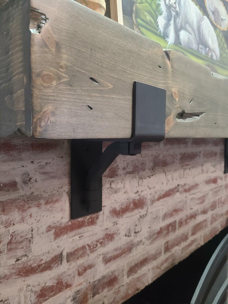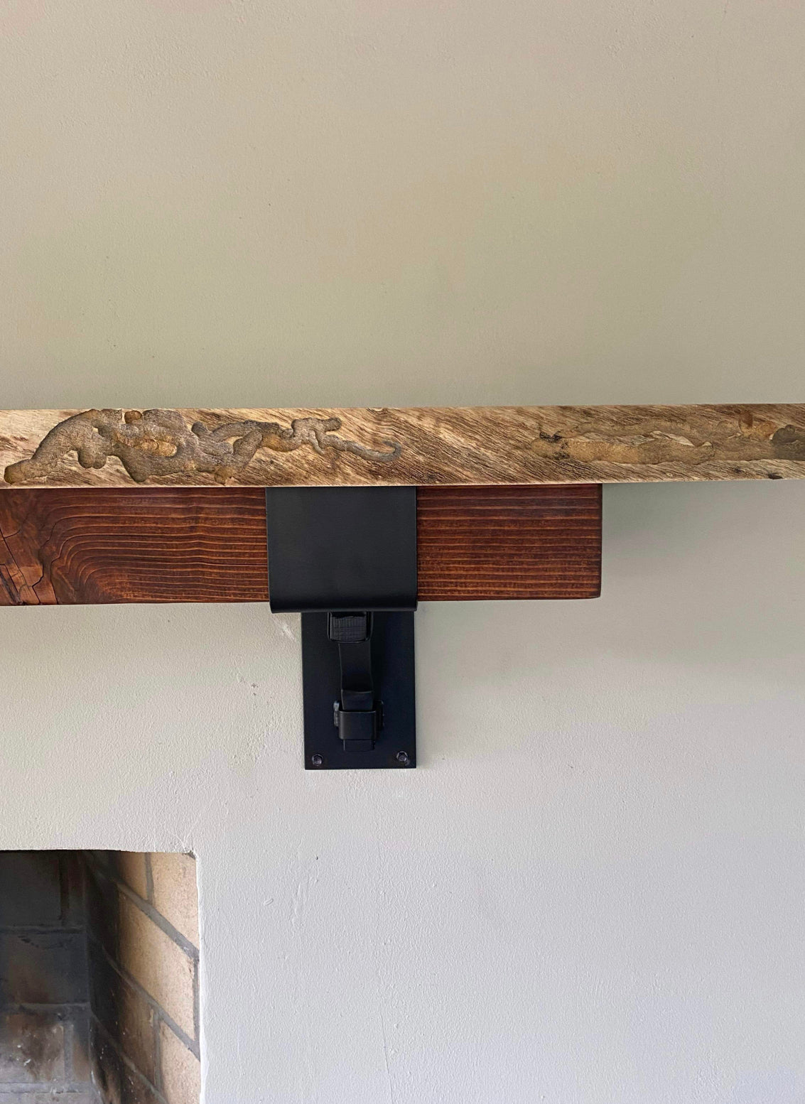 The Buffalo — our boldest mantel bracket. A 1" solid square support bar, hand-welded metal straps give this bracket an unmistakable industrial edge. Built for heavy mantels, thick floating shelves, and countertops where you want the hardware to make a statement, not disappear. Handmade in Central NY by a family shop with 53,000+ sales and 8,000+ five-star reviews.