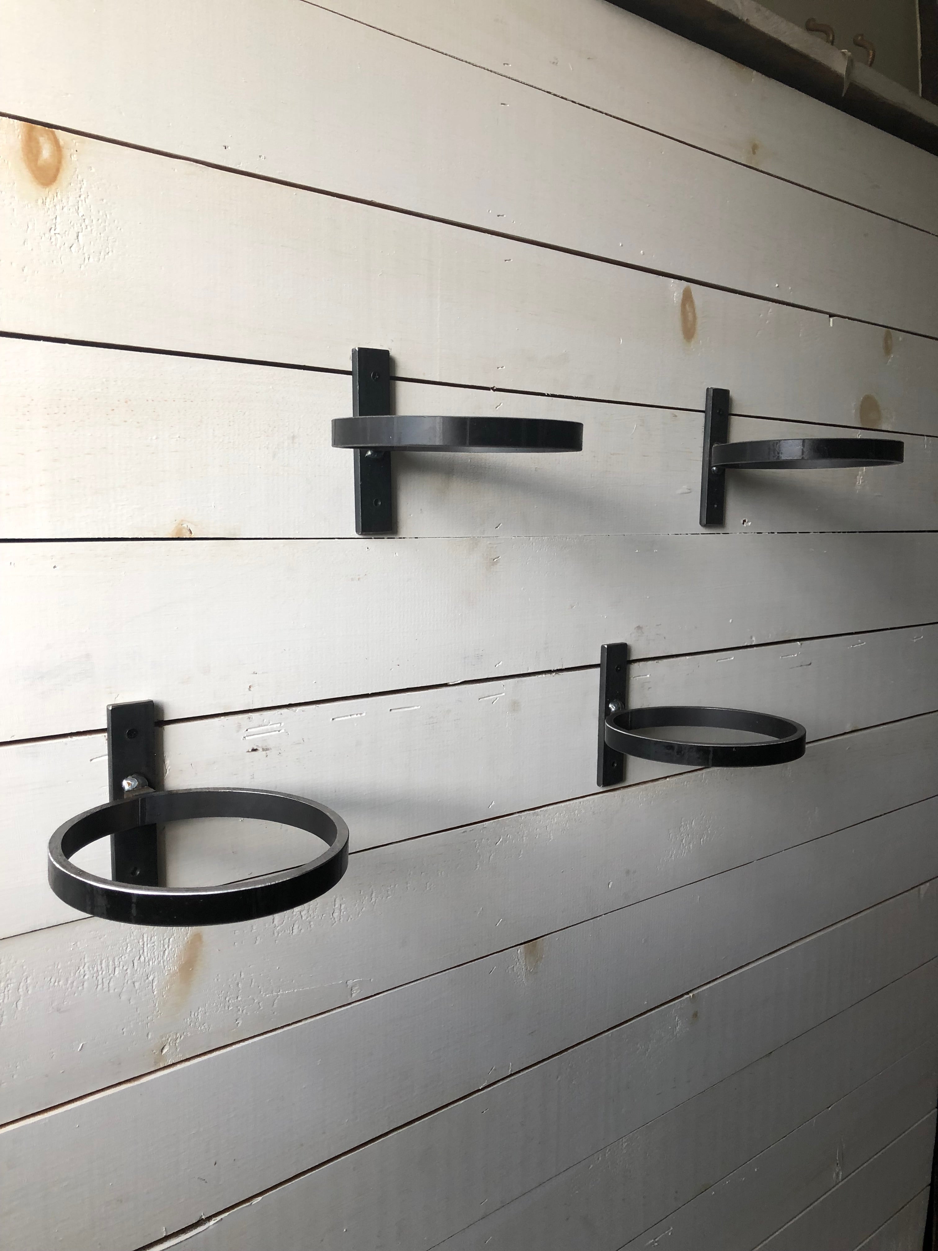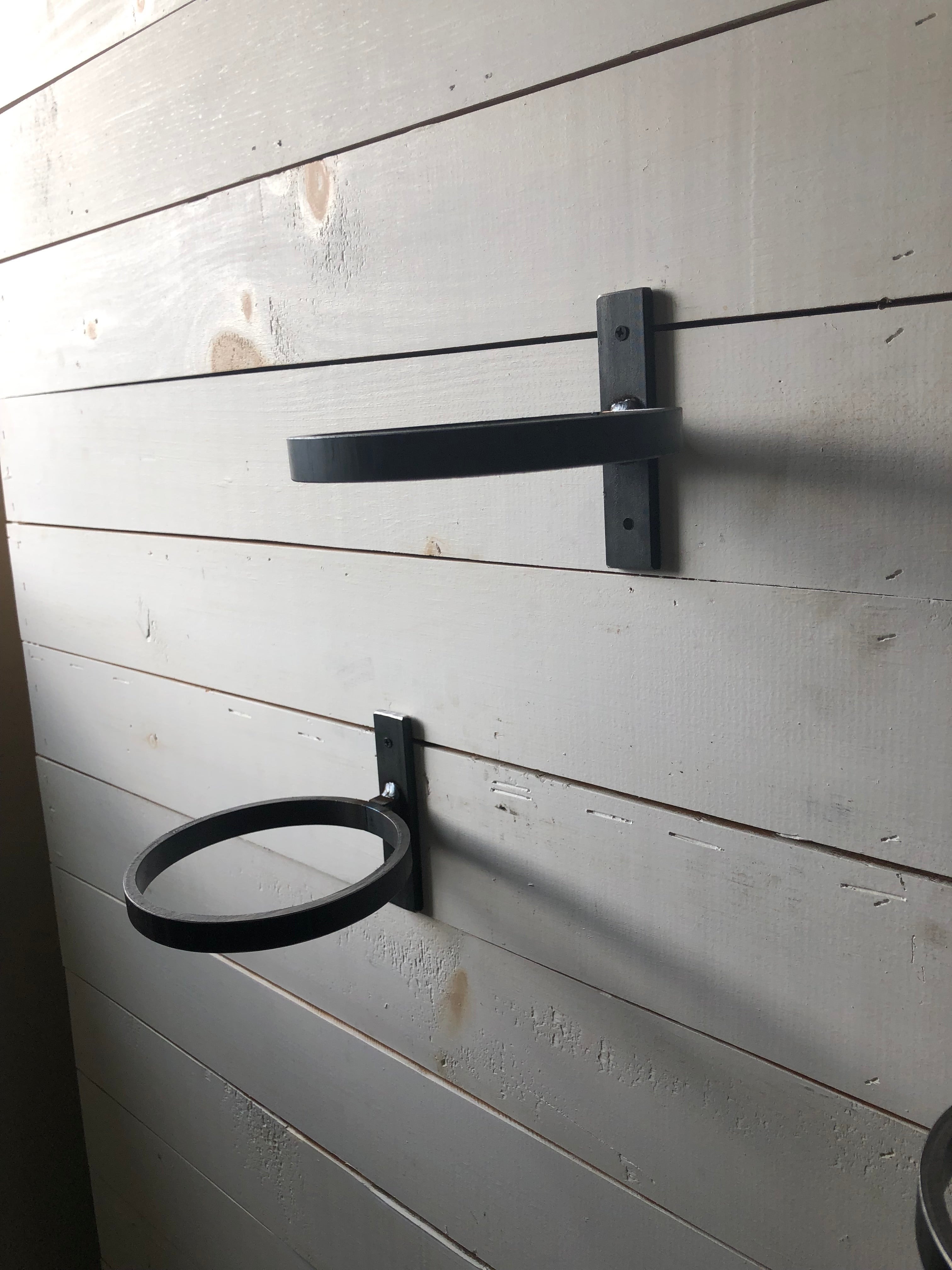 Bring your outdoor garden inside with this handmade metal wall-mount planter holder. Turn any empty wall into an herb garden or simply frame a window with flowering plants. Available in two pot sizes and four different finishes, this holder is rustic, modern, or industrial in style. It sports a 1 inch by 4 inch flat bar that secures the holder to the wall while a 1 inch wide steel ring holds a pot securely in place. It can also be of exterior use to dress up a patio wall or decorate a fence. Use your imagination for endless possibilities with this holder!
