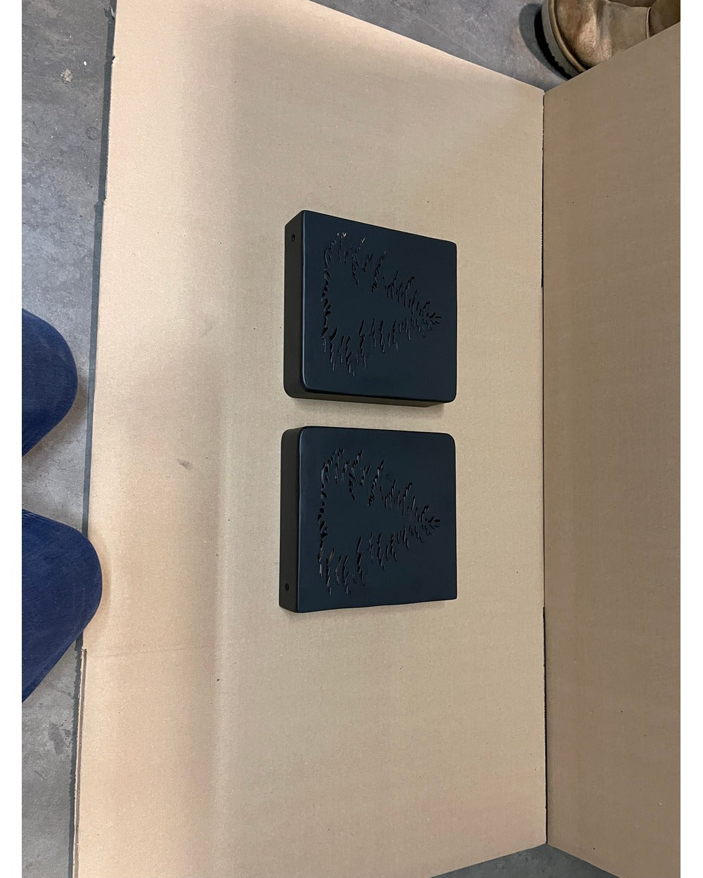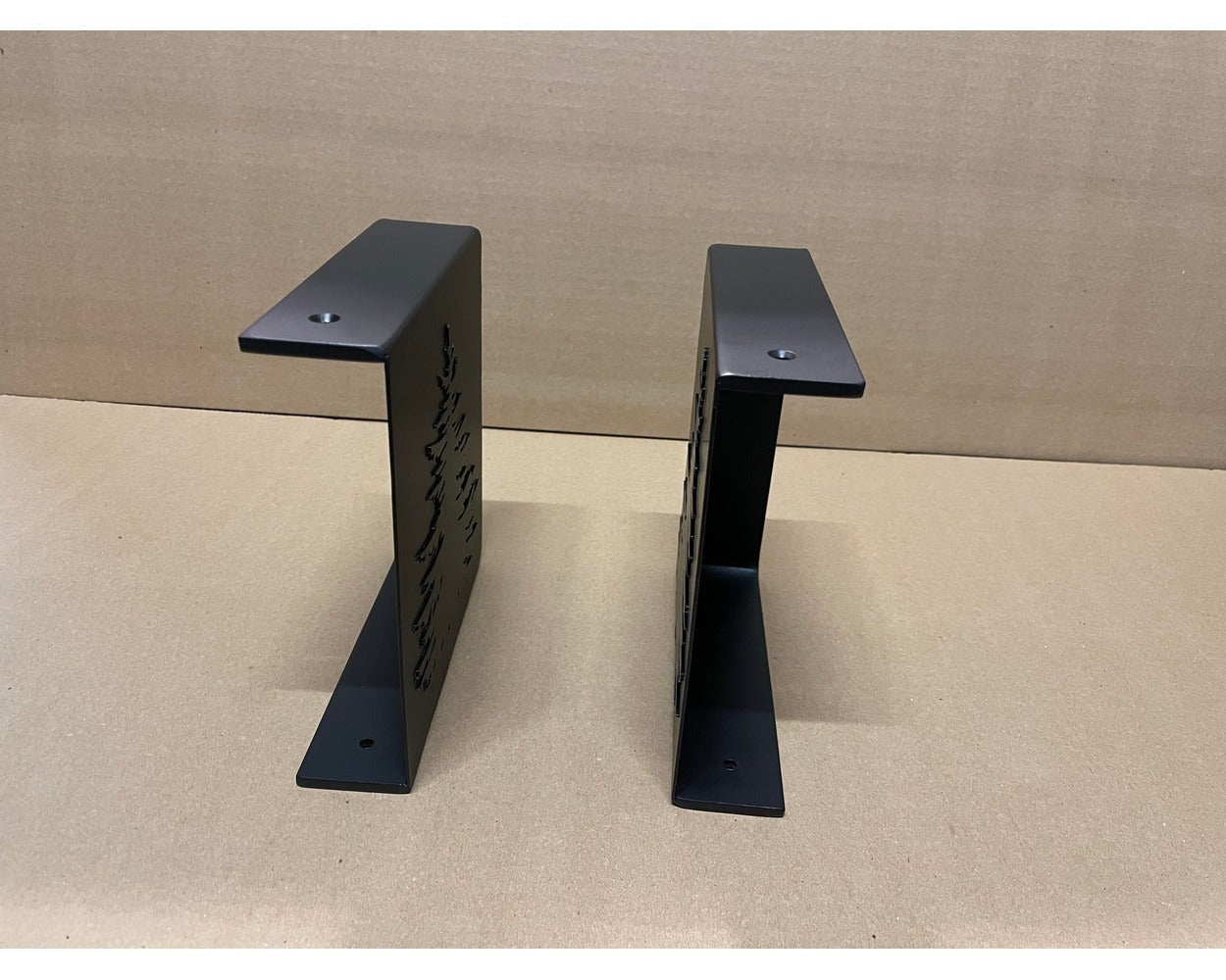 The Vandiver Tree — decorative steel mantel end caps featuring a plasma-cut evergreen tree silhouette. Originally designed for Vandiver Homes in Horseshoe Bay, Texas, these caps bring timeless mountain charm to your fireplace. Three-sided design slides over your wood beam and sits flush with the wall. Perfect for mountain homes, forest cabins, ski lodges, and anyone who loves nature. Made to order in Central NY by a family shop with 53,000+ sales and 8,000+ five-star reviews.