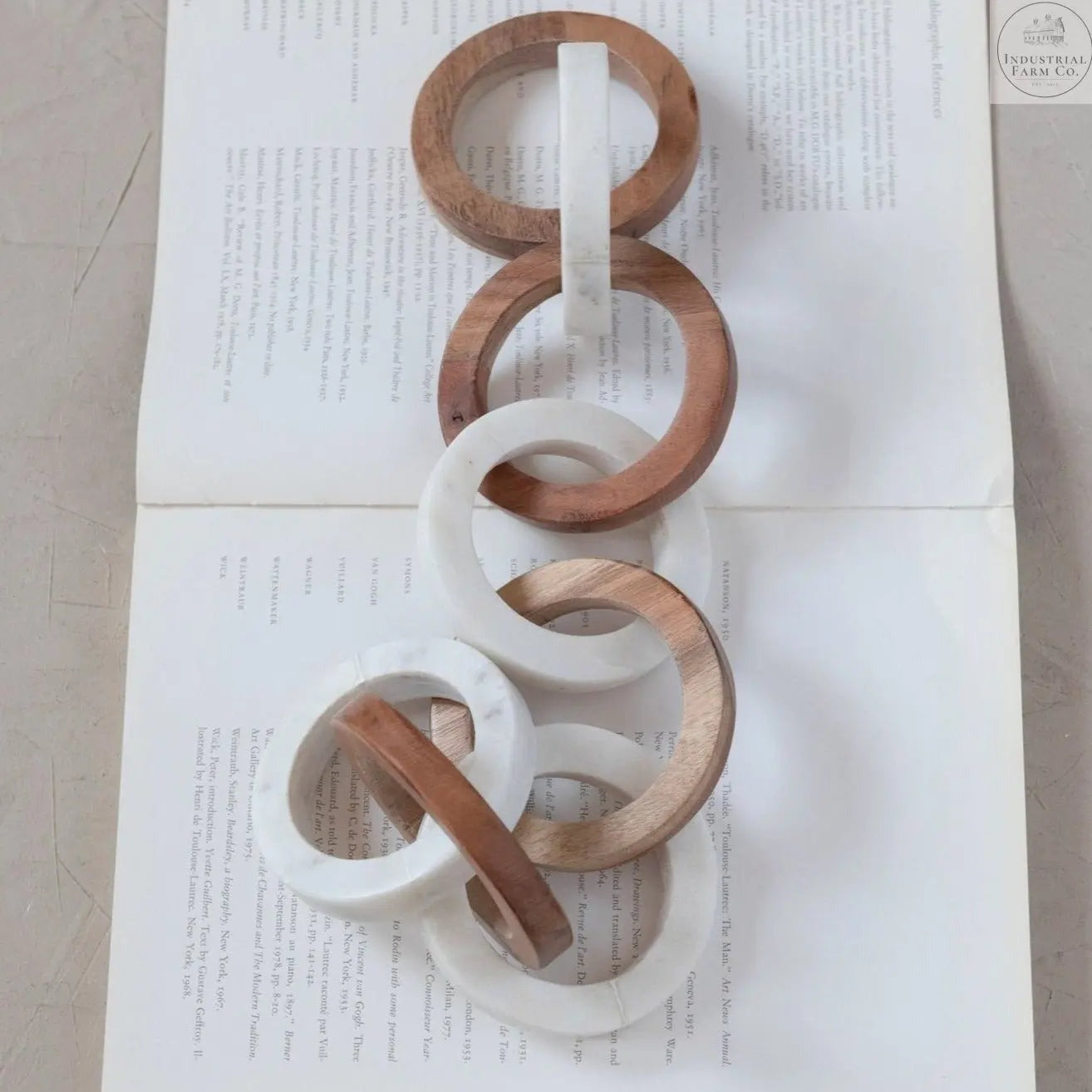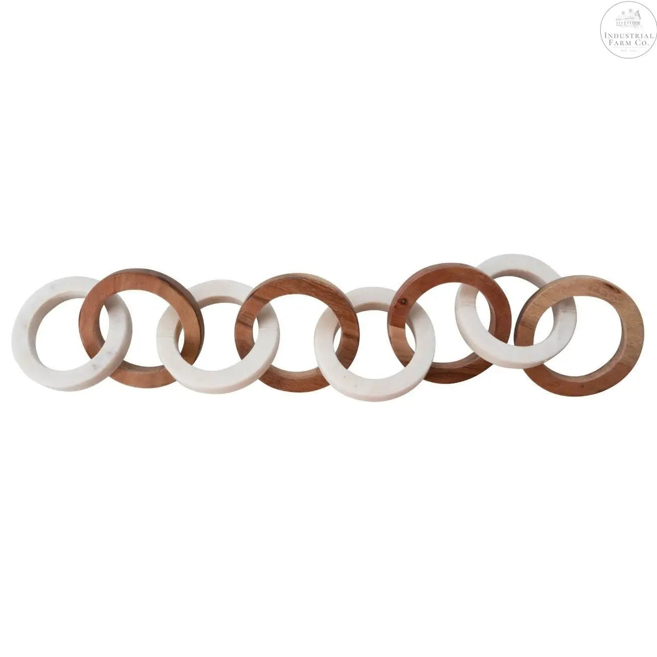 Add an elegant touch to your home with the Acacia Wood and Marble Chain. Its unique design combines acacia wood and marble to create a stunning accent piece. Perfect for living rooms, bedrooms, and more, it adds a touch of style and sophistication to any room.