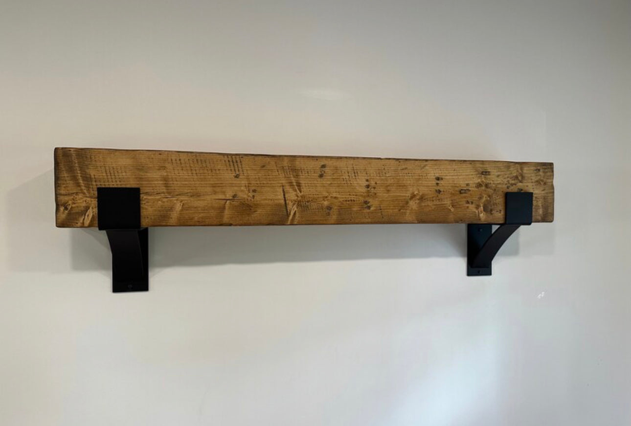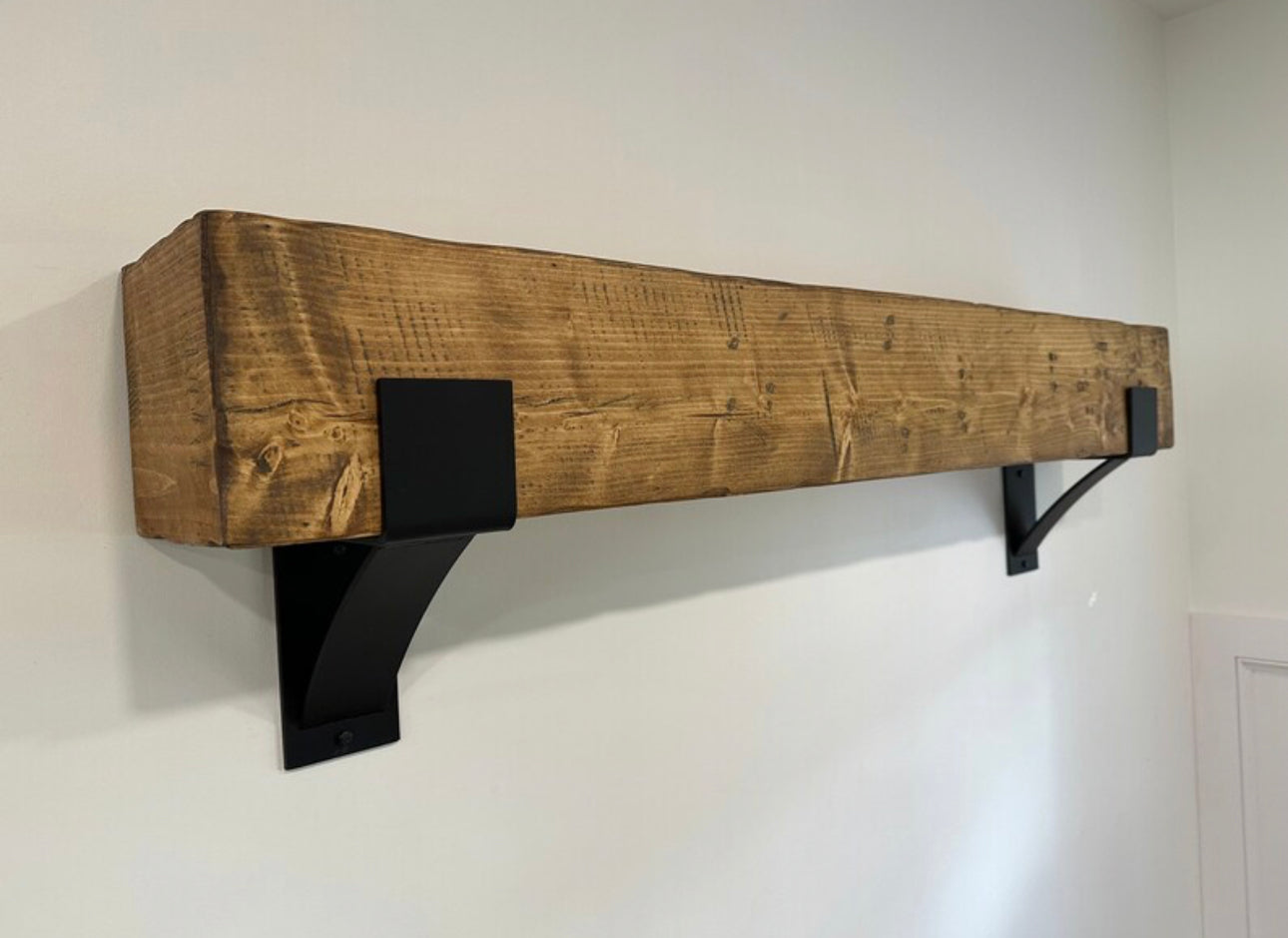 The kit features a handcrafted mantel, made with utmost care and precision from meticulously chosen wood by @danmadedesigns, based in Weedsport, NY. To complement the mantel, the kit is equipped with a pair of Kudlick Style 8x8 heavy duty brackets, finished in a chic matte black powder coating.