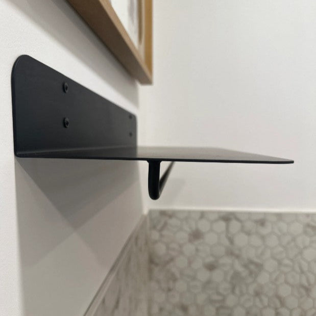 Our meticulously crafted metal wall shelf, a versatile and stylish addition to any room in your home. Designed with functionality and durability in mind, this shelf offers you the unique ability to mount it with the support leg positioned either above or below the shelf, allowing for a customized look that fits your space and style preferences perfectly.