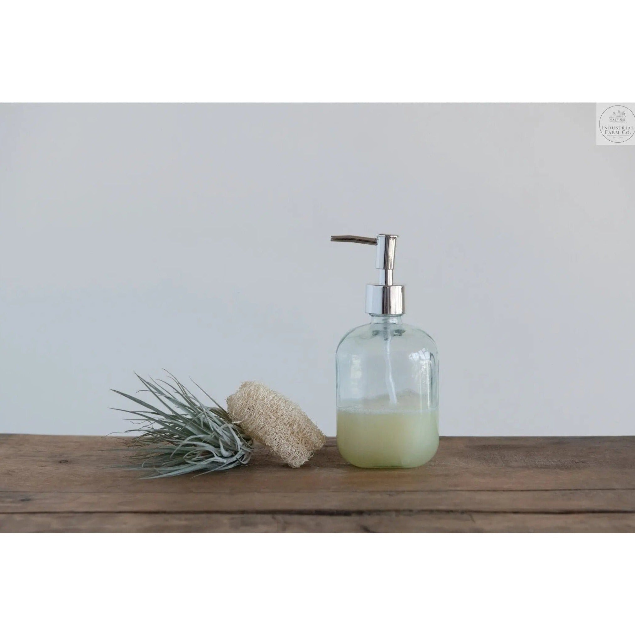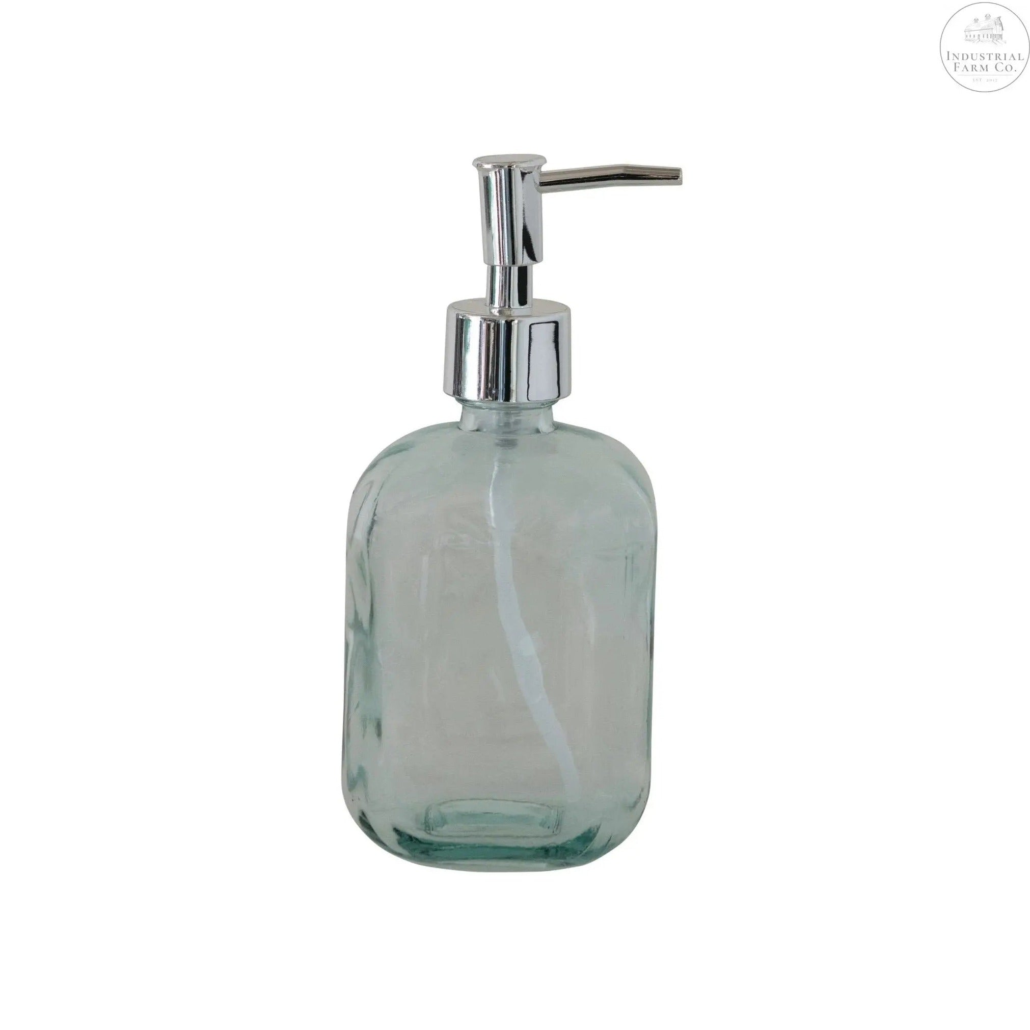 This soap bottle is the perfect addition to any kitchen or bathroom. It is unique because it is made out of recycled glass, and its see-through material makes it blend in perfectly with any style of decor. It has a pump for dispensing soap and looks great on any countertop.