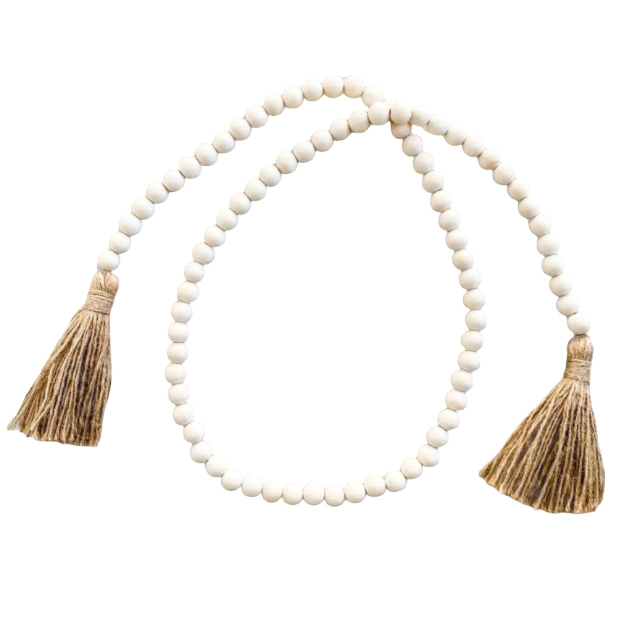 Enhance your home decor with our 72" Jute and Wood Bead Garland featuring charming tassels.