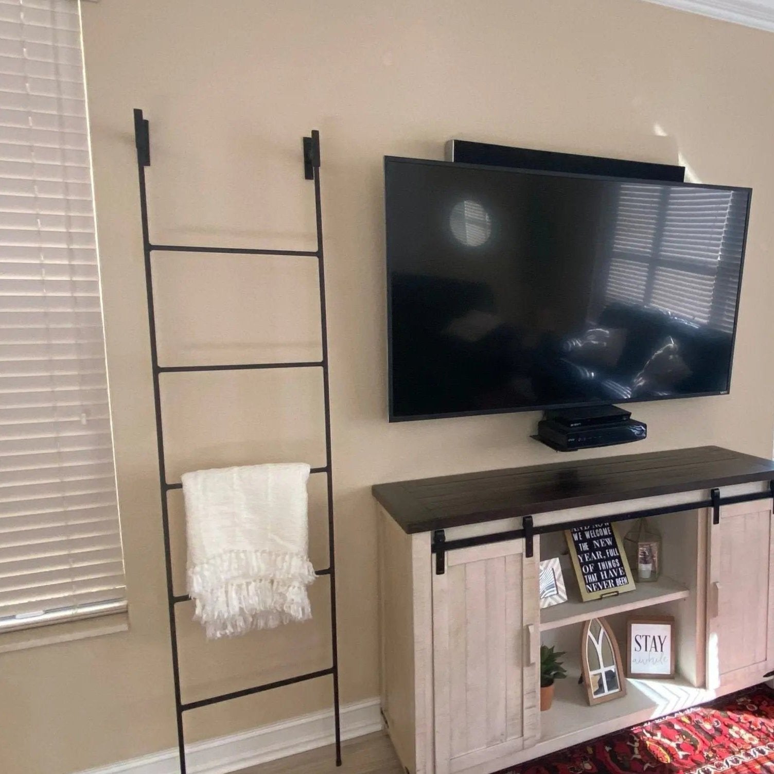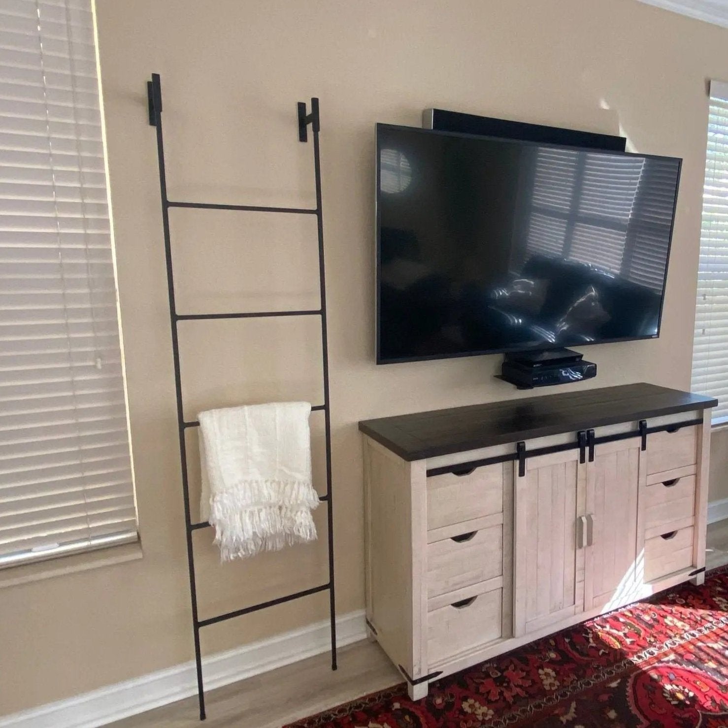 Keep your blankets handy but out of the way with this decorative and durable steel blanket ladder. Mounted right to the wall, this ladder is the perfect way to show off all your declarative blankets, or even add it to your bathroom as the ultimate towel holder! This ladder comes in your choice of two widths and five heights and comes with 2 mounting legs that will secure your ladder to the wall. Want additional mounting hardware to completely hang your ladder from the wall? No problem! Send us a message and we will be happy to make you a custom order!