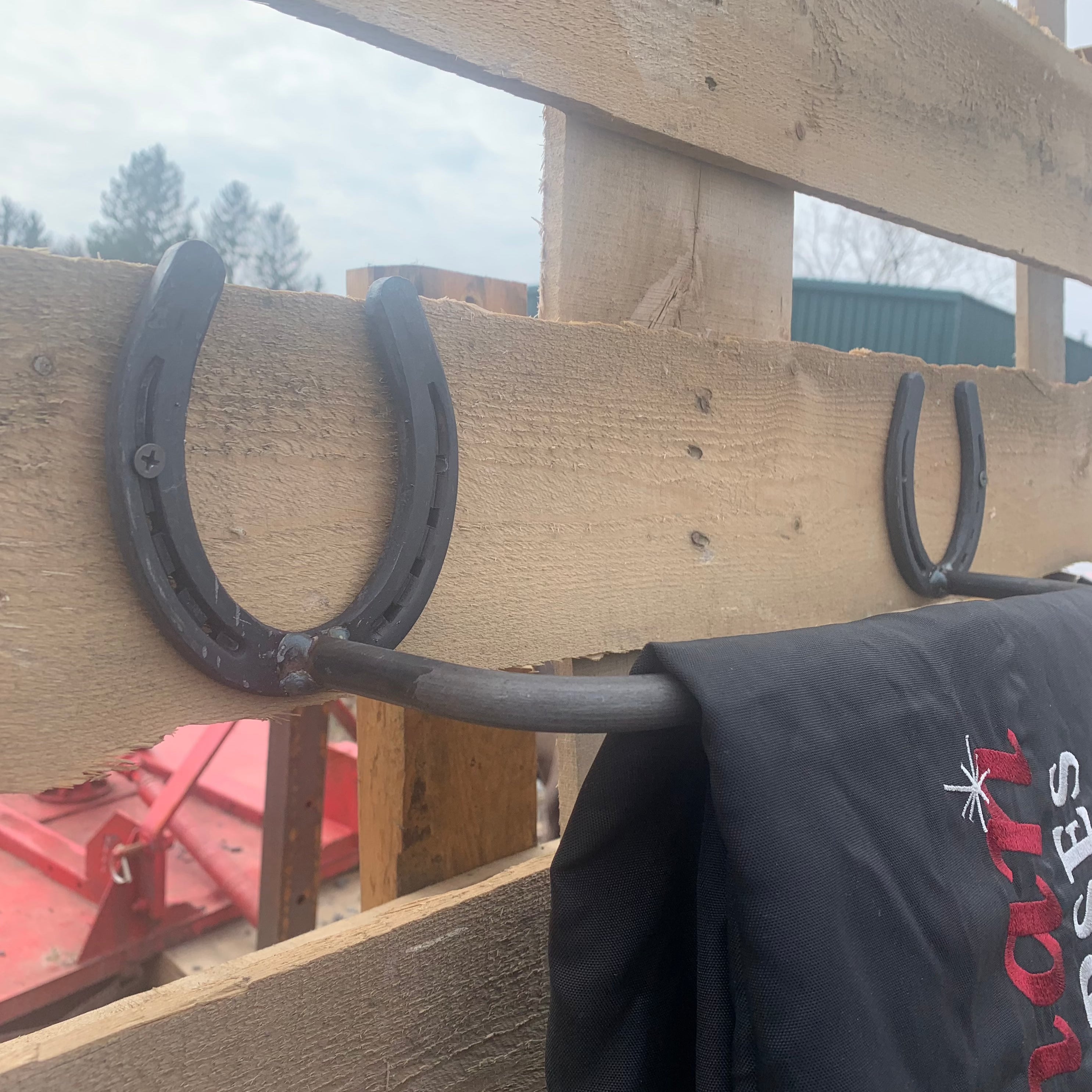 Introducing the Industrial Farm Co Donahue Towel Bar, the perfect addition to your home, farm house, or barn. Featuring unique horseshoe accents on each end, this towel bar adds a fun twist to the basic design. Upgrade your bathroom decor today with this beautiful and functional towel rack.