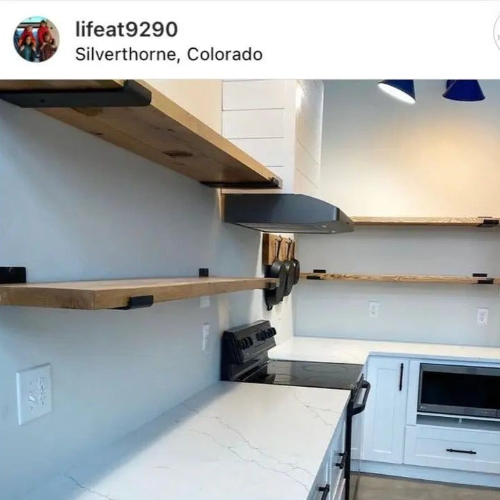 Check out more shipping and delivery information. Please look at our FAQ at the bottom of the page for more information. Selecting sizing: The wall-mounted portion for the Dudley bracket is a standard 6” tall. The sizes listed refer to shelf depth. Choose the depth that equals the depth of the shelf you are hanging. |