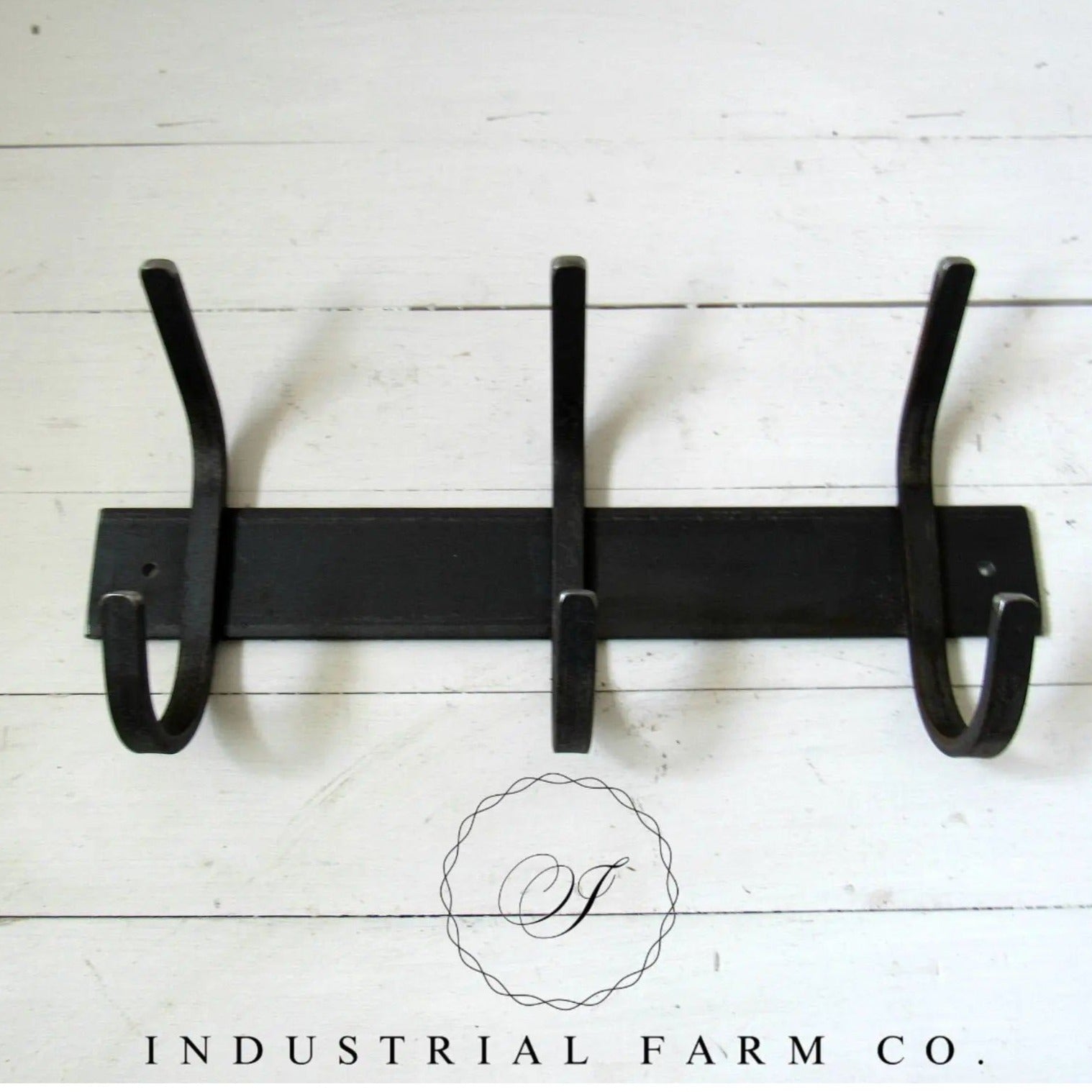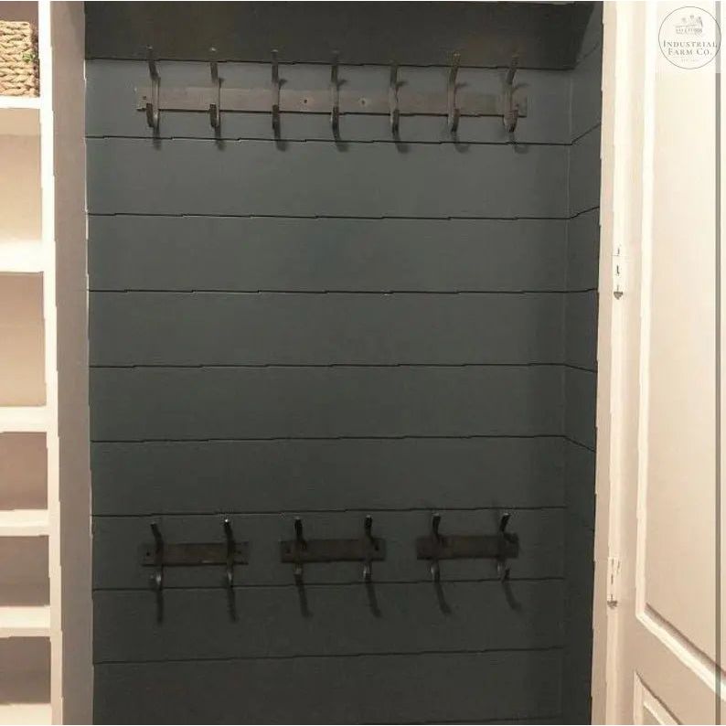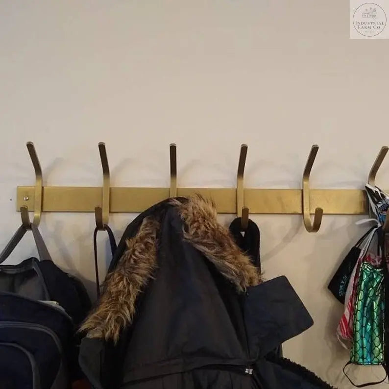 The heavy duty steel Eastman Coat & Hook Rack by Industrial Farm Co. - a practical and stylish storage solution designed to enhance your foyer, mudroom, pool house, or laundry room.