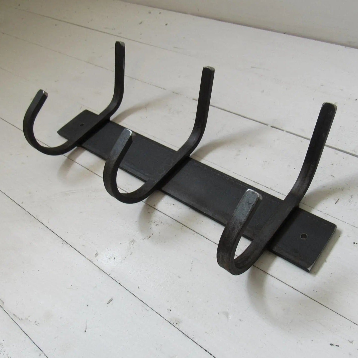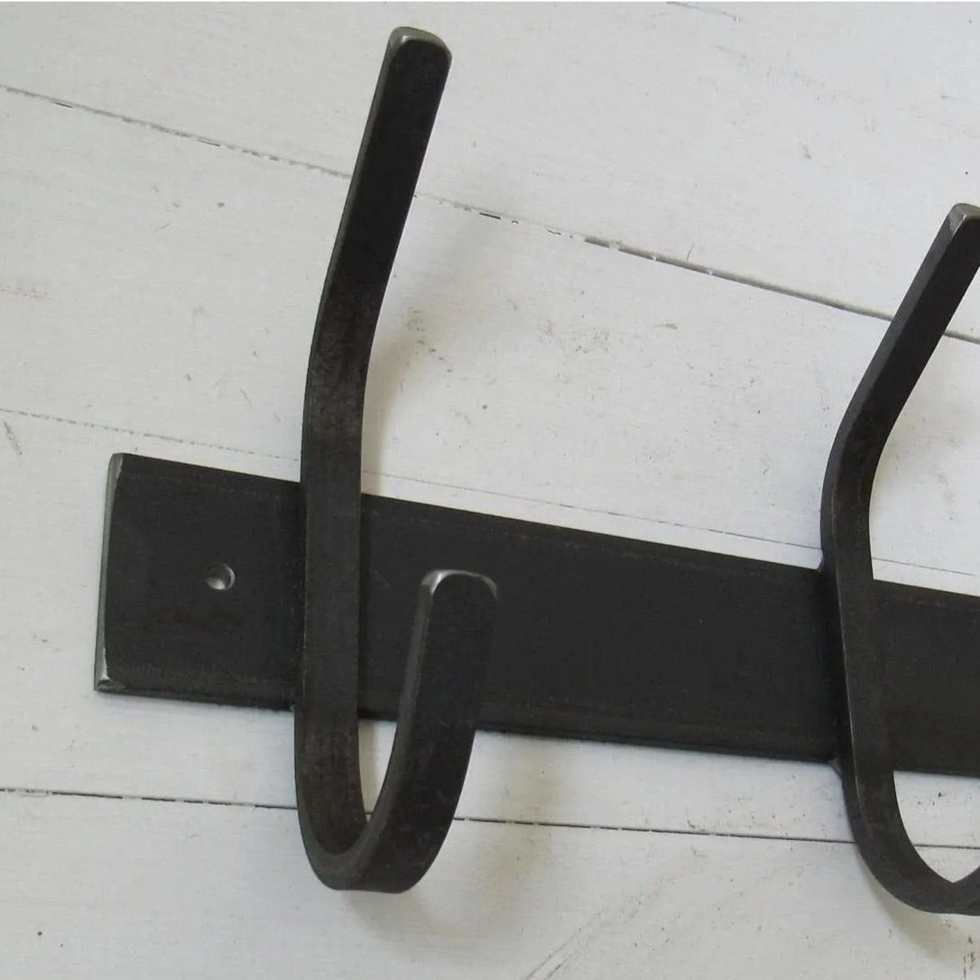 Expertly crafted, this rack features a 2-inch wide flat bar base that mounts flush against the wall, along with 1/2-inch wide hooks meticulously welded for maximum durability and functionality.