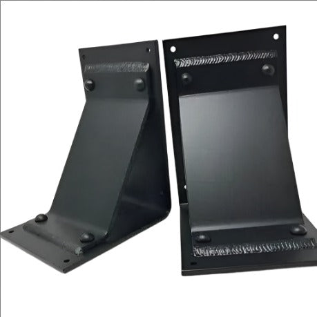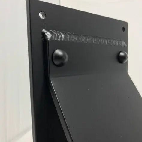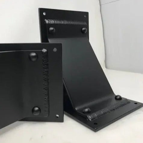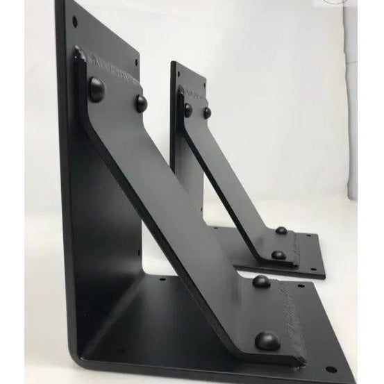 The Industrial Farm Co Geneseo Brackets are sturdy, rustic styled brackets. These brackets are 6 inches wide with a 5 inch wide angled support bar with rivets added.