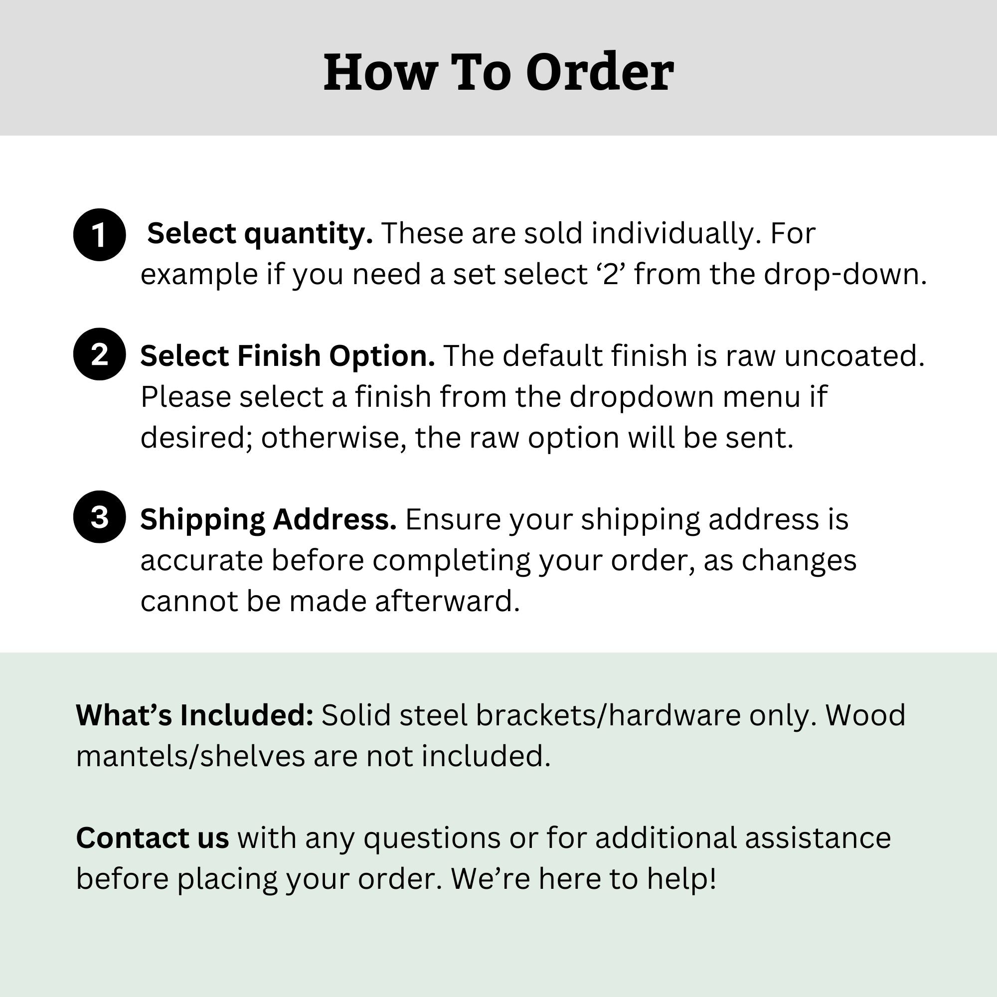 NOTE: Price includes ONE (1) bracket only – Mantel & Screws NOT included