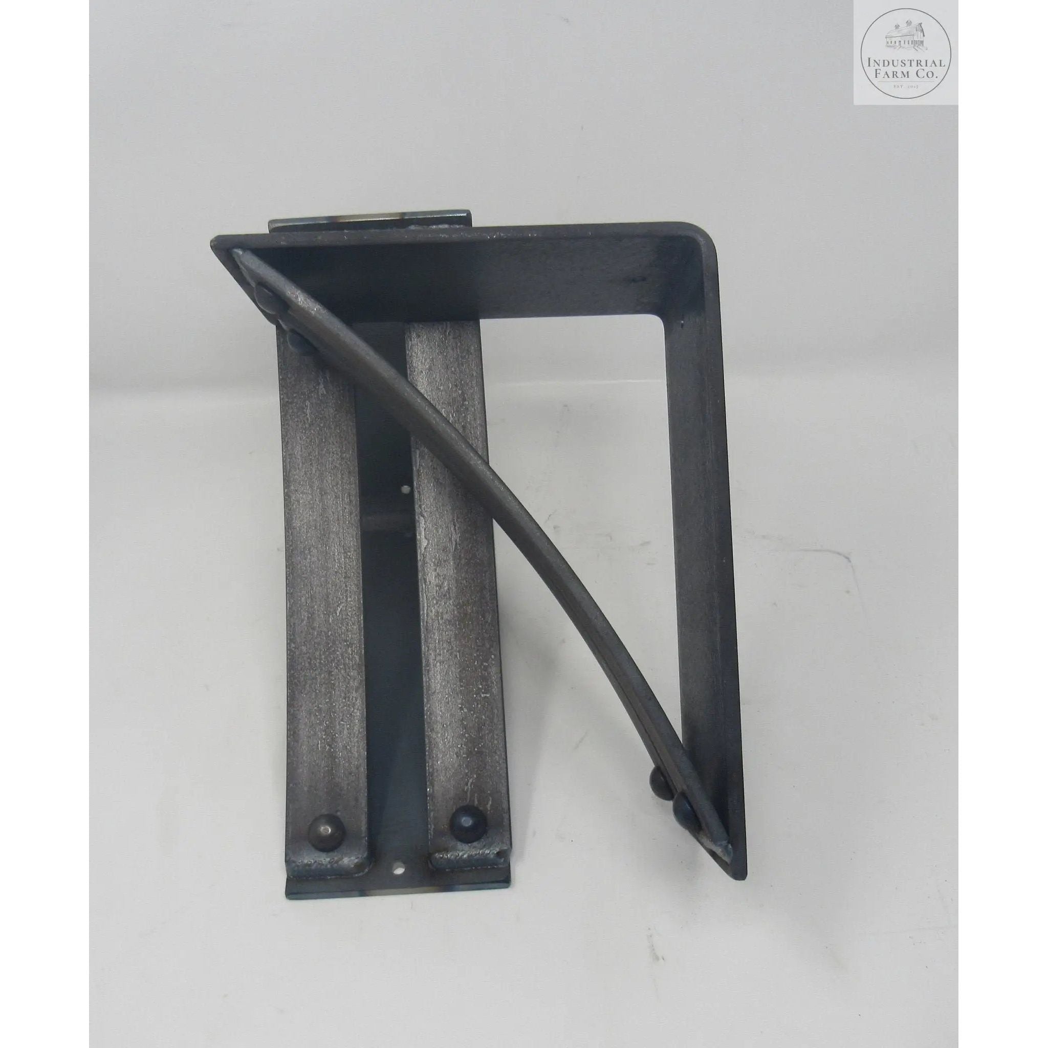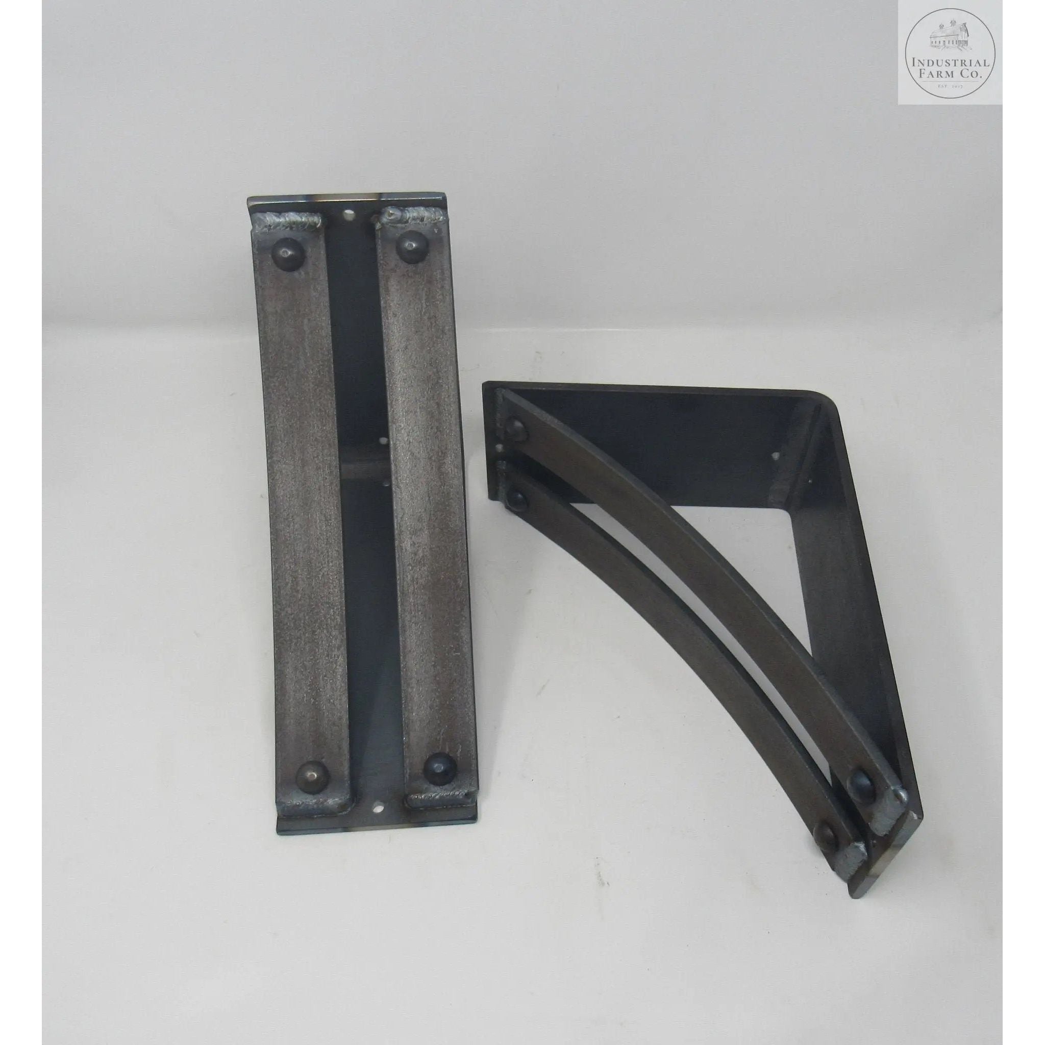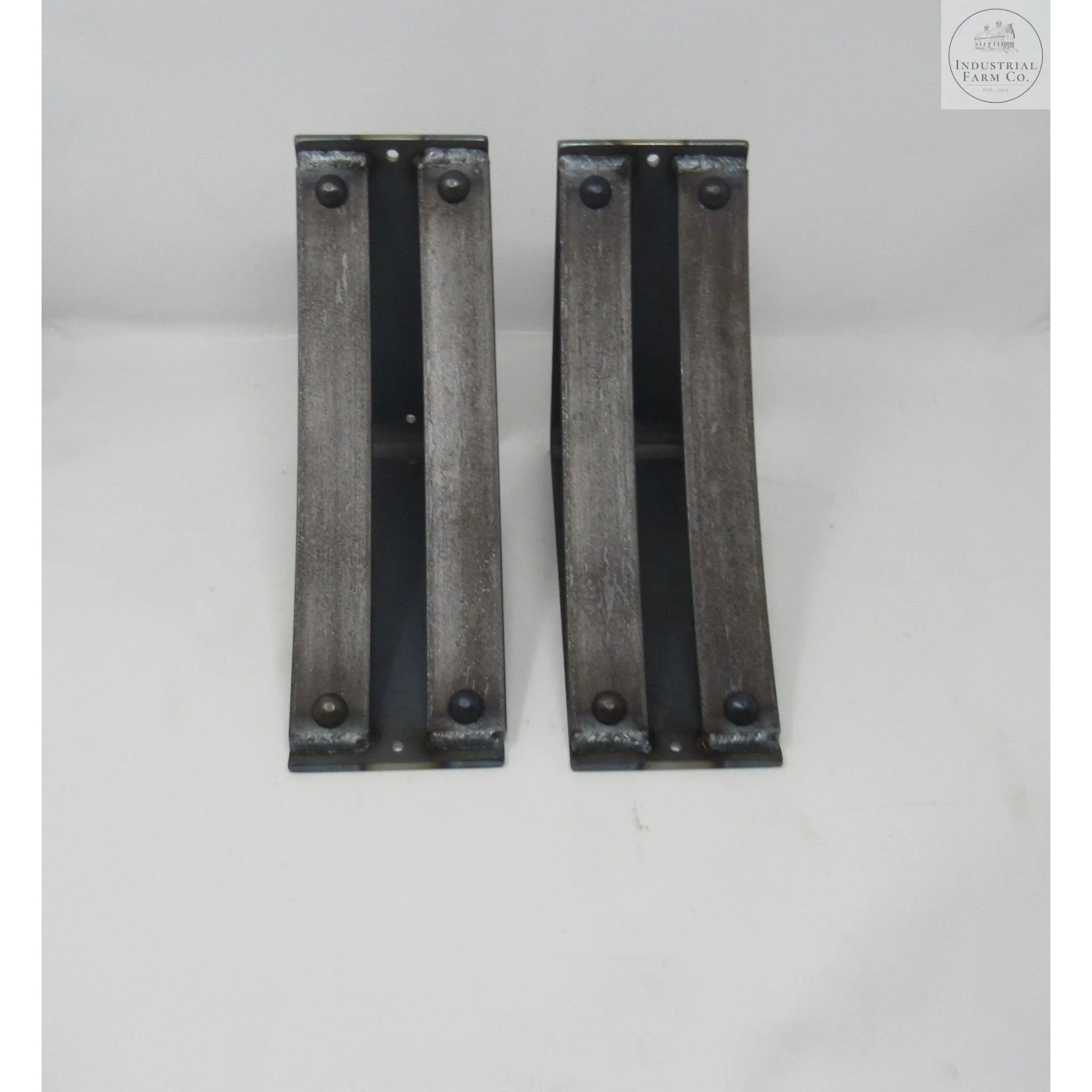 The Industrial Farm Co Jamestown Brackets are a stylish 4-inch-wide bracket with two 1.5-inch curved support bars with rivets added to the support bars.