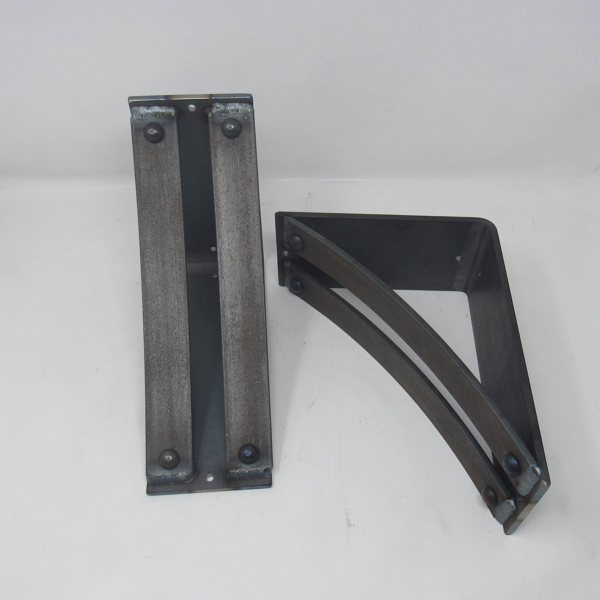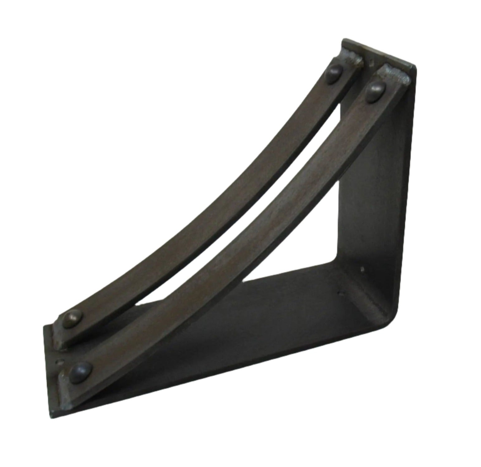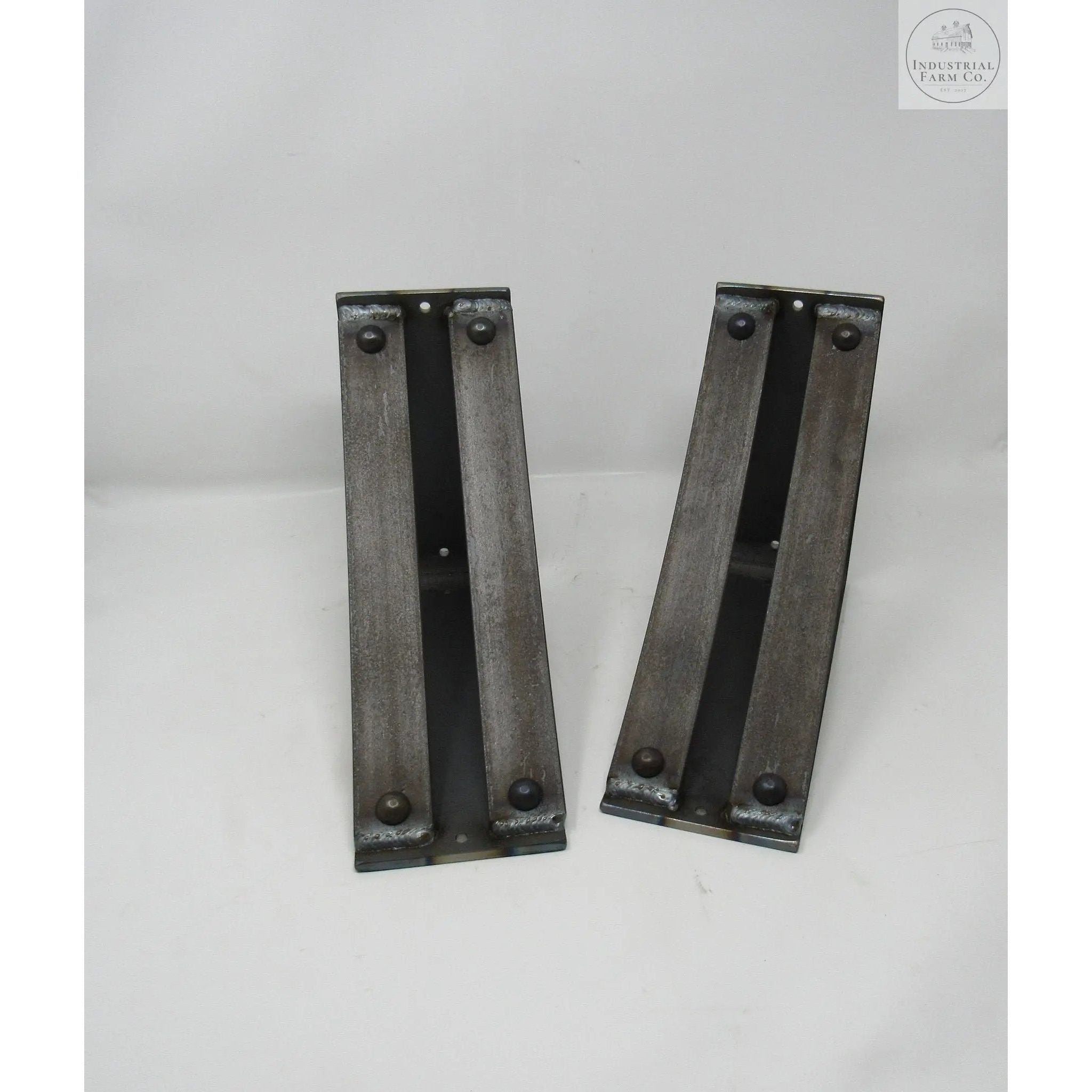 The Industrial Farm Co Jamestown Brackets are a stylish 4-inch-wide bracket with two 1.5-inch curved support bars with rivets added to the support bars.