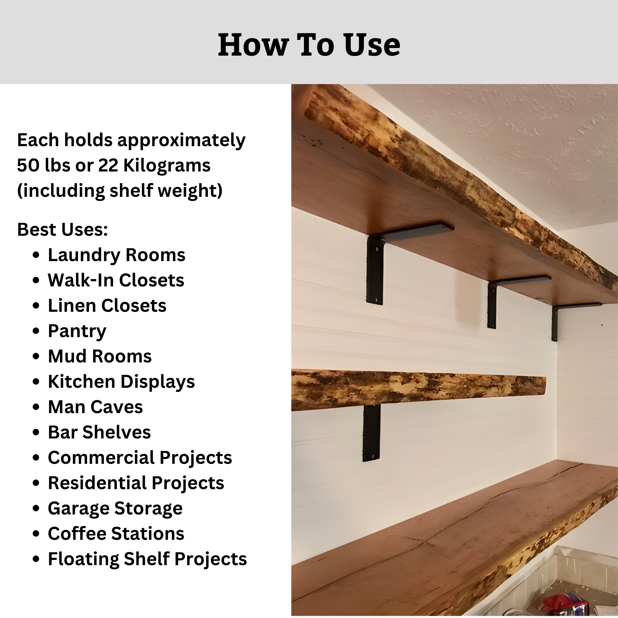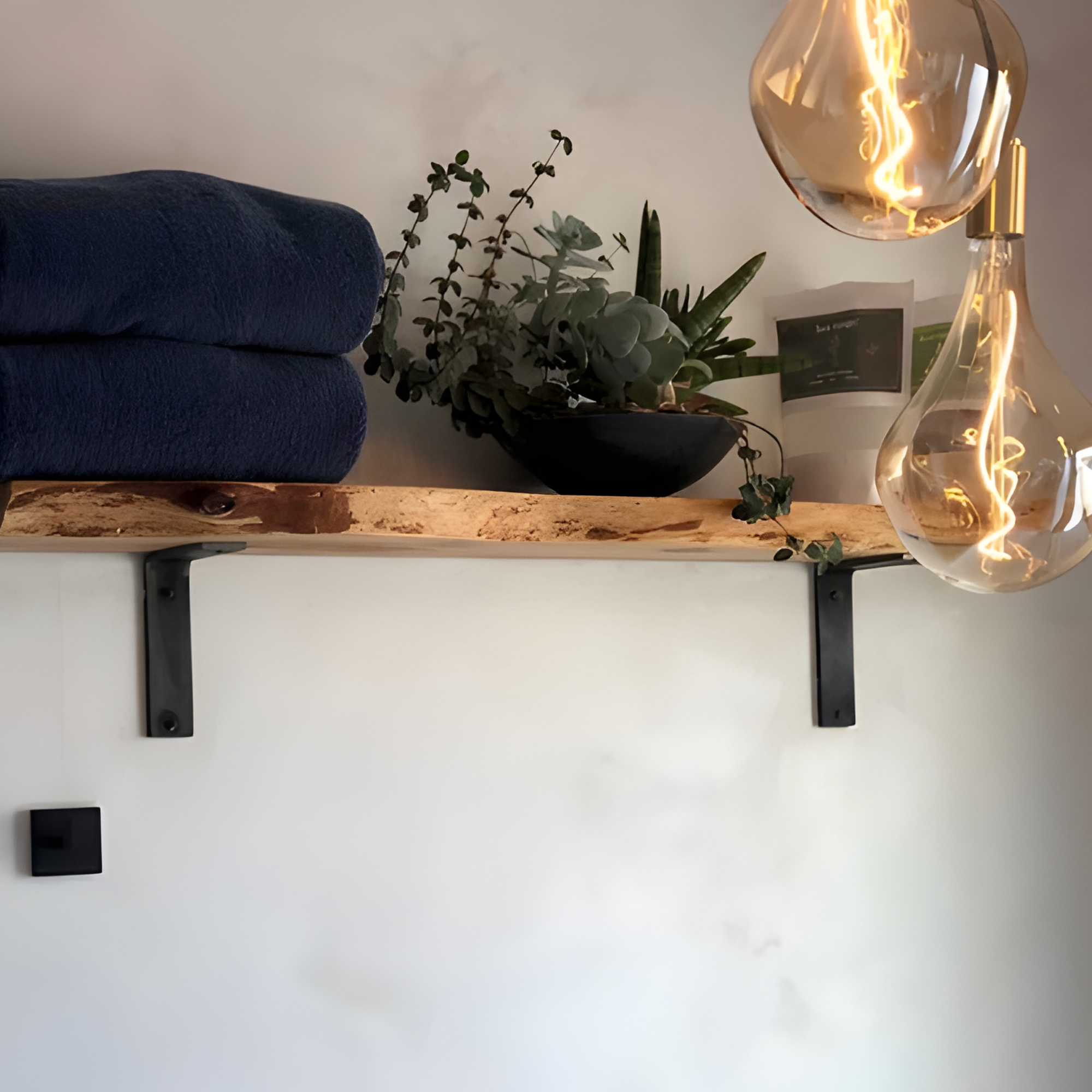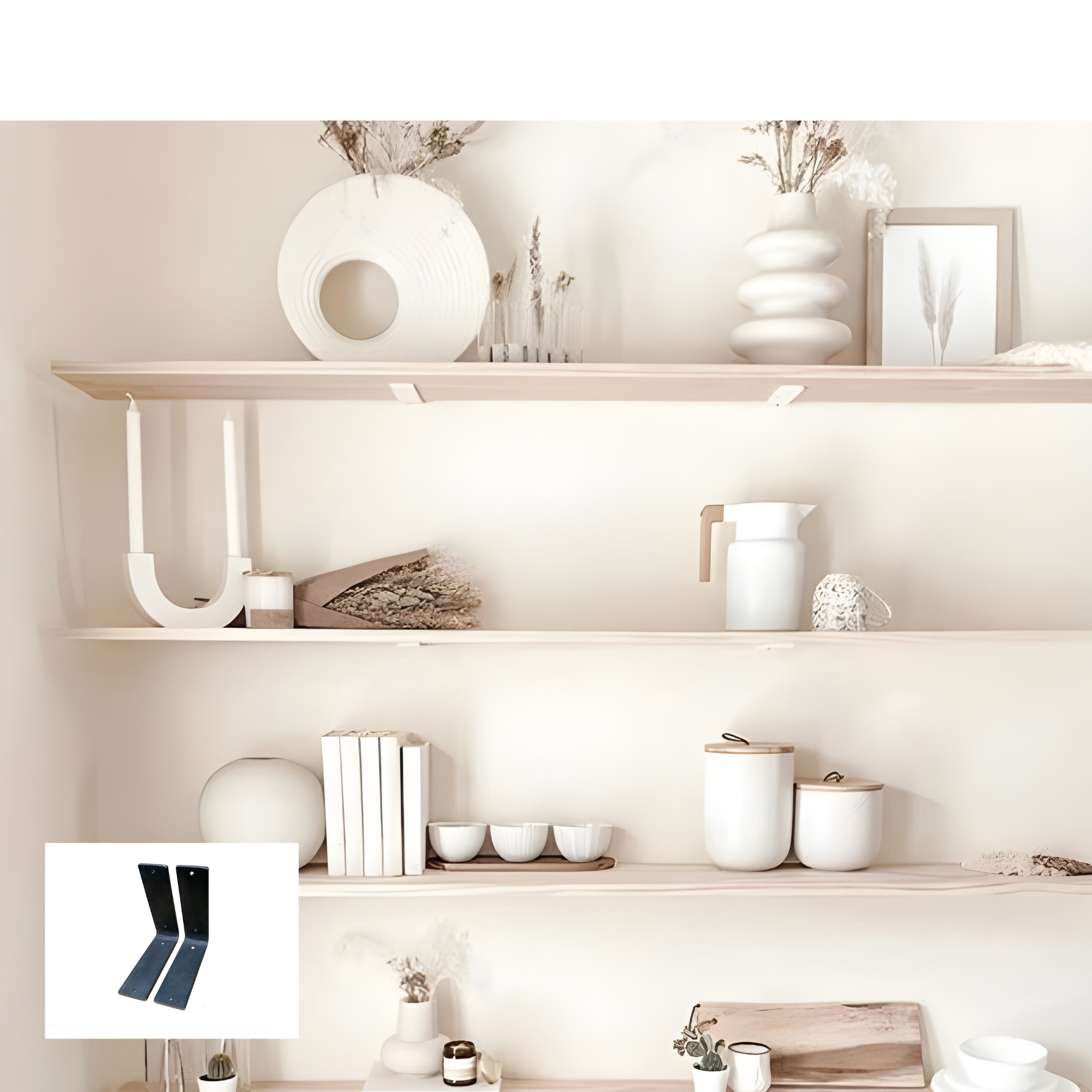 Raw-Edge Appeal: Embrace the rustic charm of a raw-edge shelf, thanks to the unique design of these steel brackets. They add a touch of industrial character to your space, making them perfect for a wide range of interior aesthetics.
