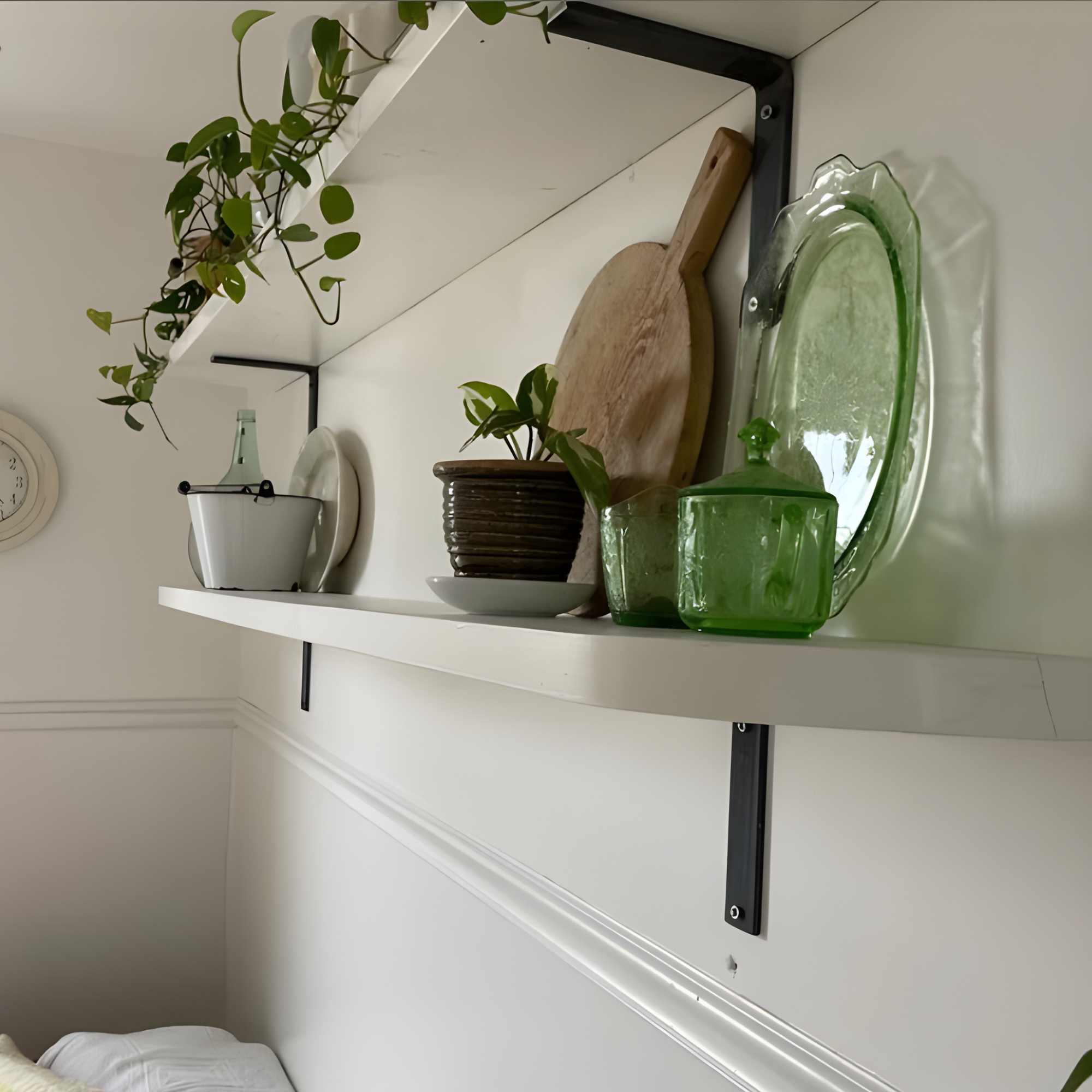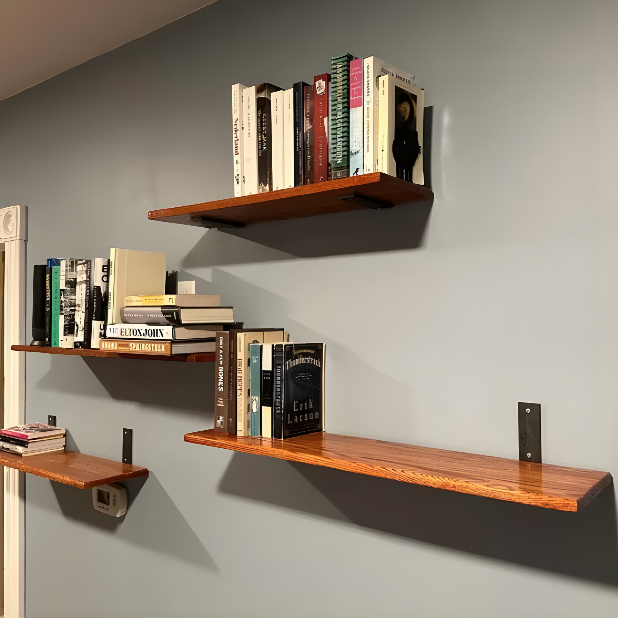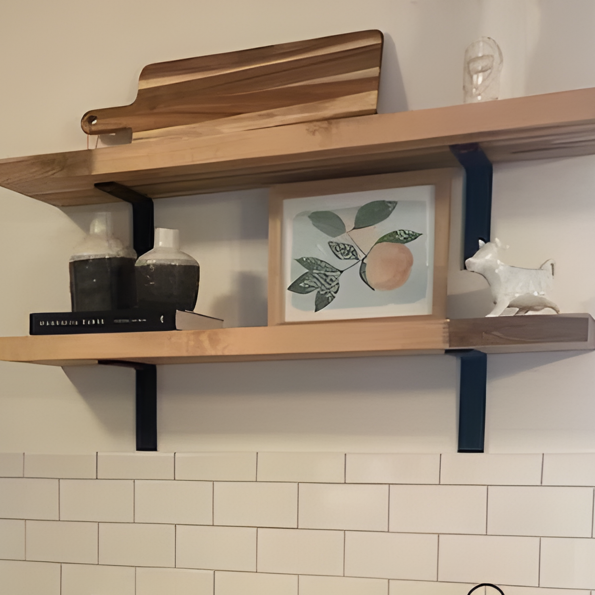 Raw-Edge Appeal: Embrace the rustic charm of a raw-edge shelf, thanks to the unique design of these steel brackets. They add a touch of industrial character to your space, making them perfect for a wide range of interior aesthetics.