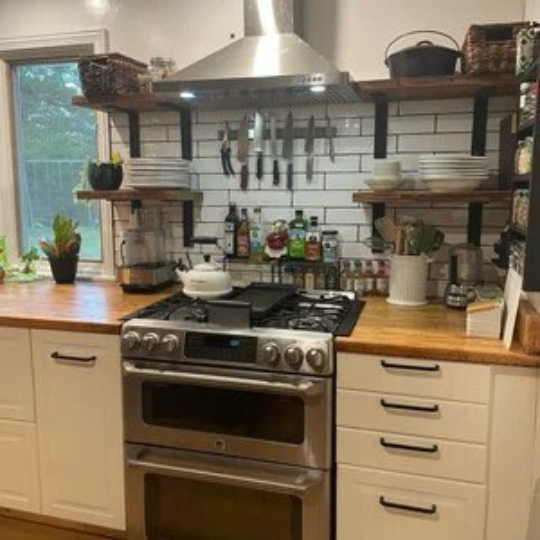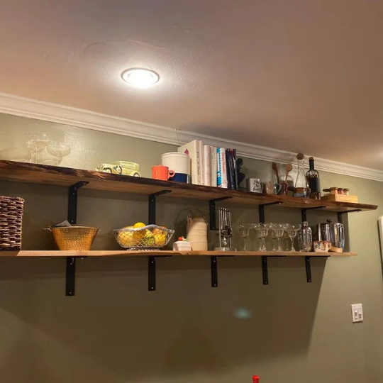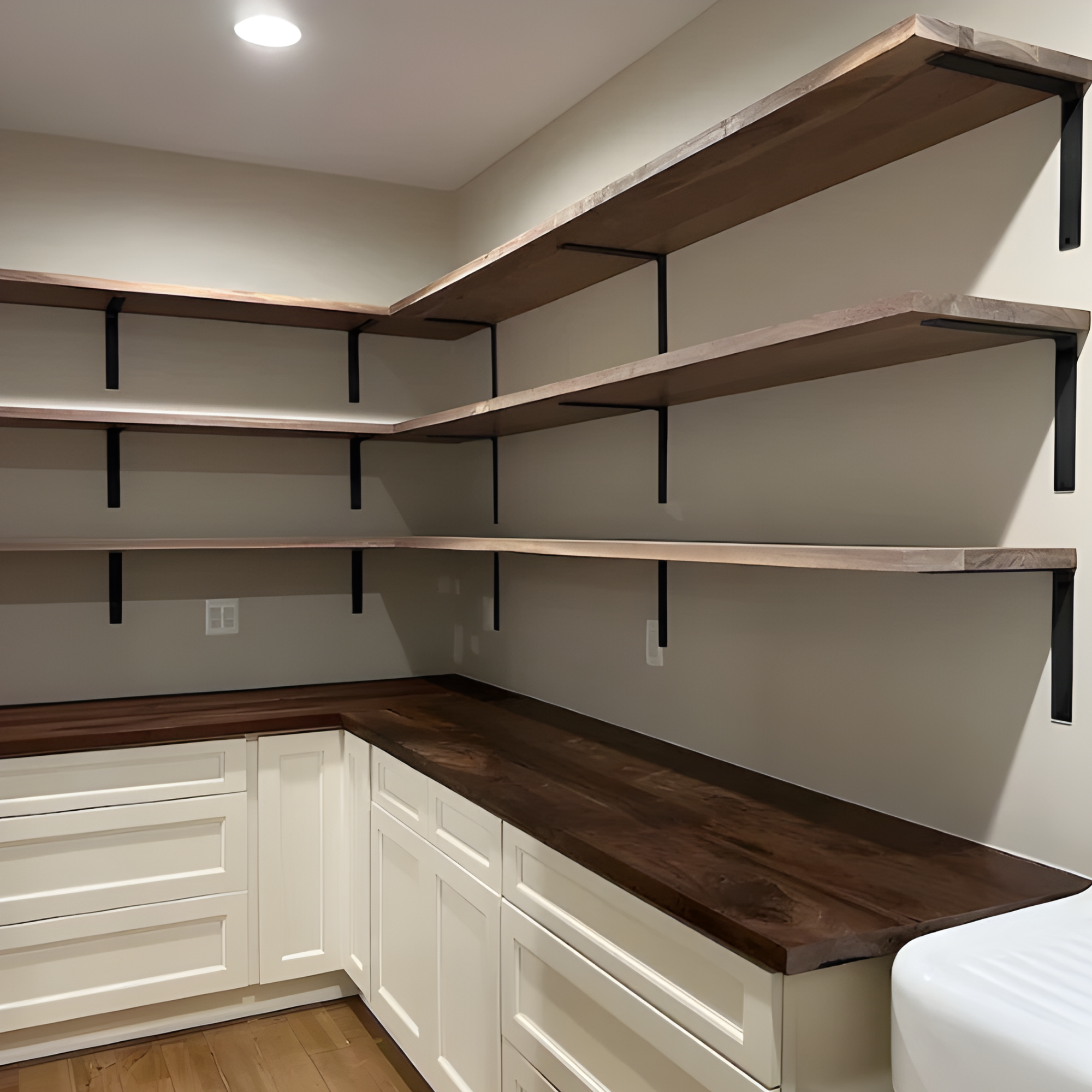 Kitchen Organization: Optimize kitchen storage by using these brackets to support open shelves. Display your favorite cookware, dishes, or herbs in style while keeping everything within easy reach.