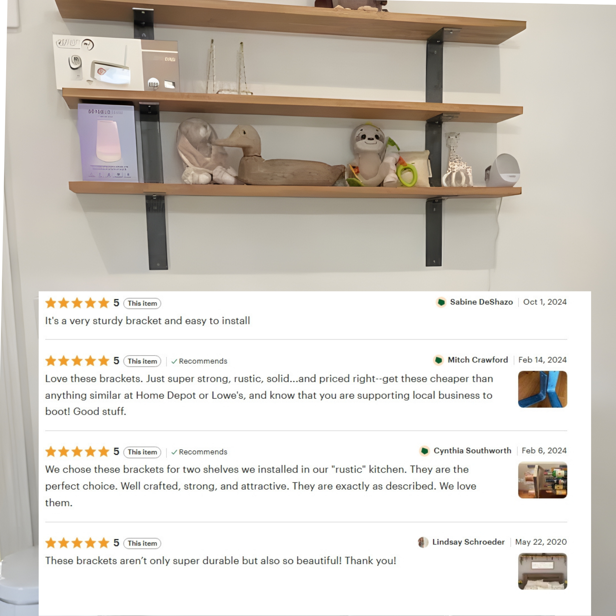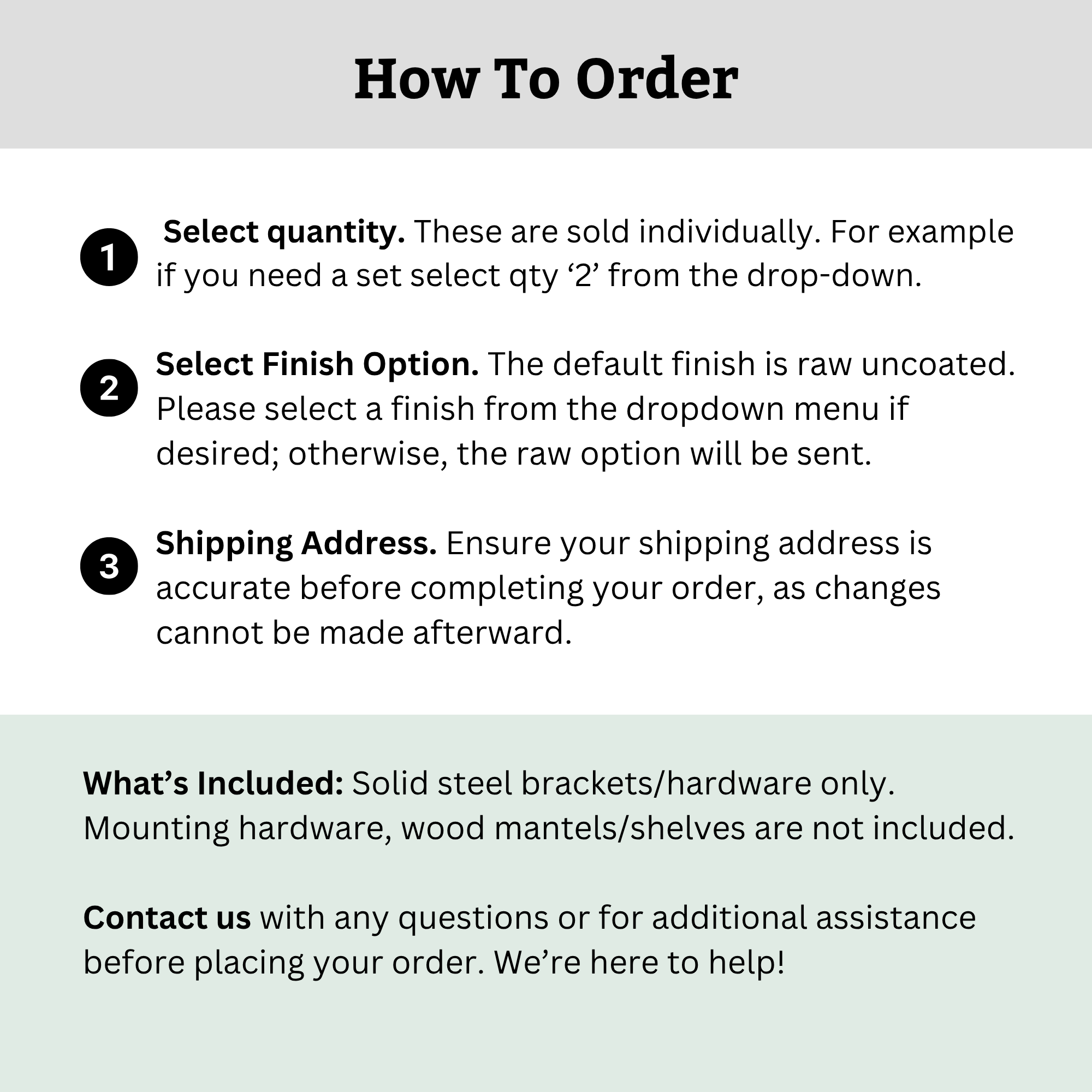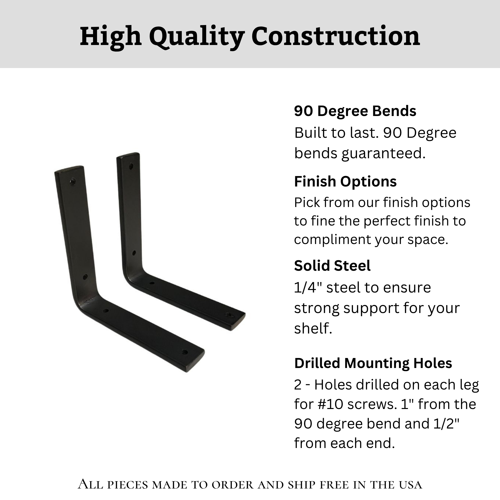 Customization at Your Fingertips: Choose from a selection of custom sizes and six distinct finishes to tailor these versatile brackets to your home style. Whether your decor leans towards farmhouse chic or industrial charm, these brackets seamlessly fit in.