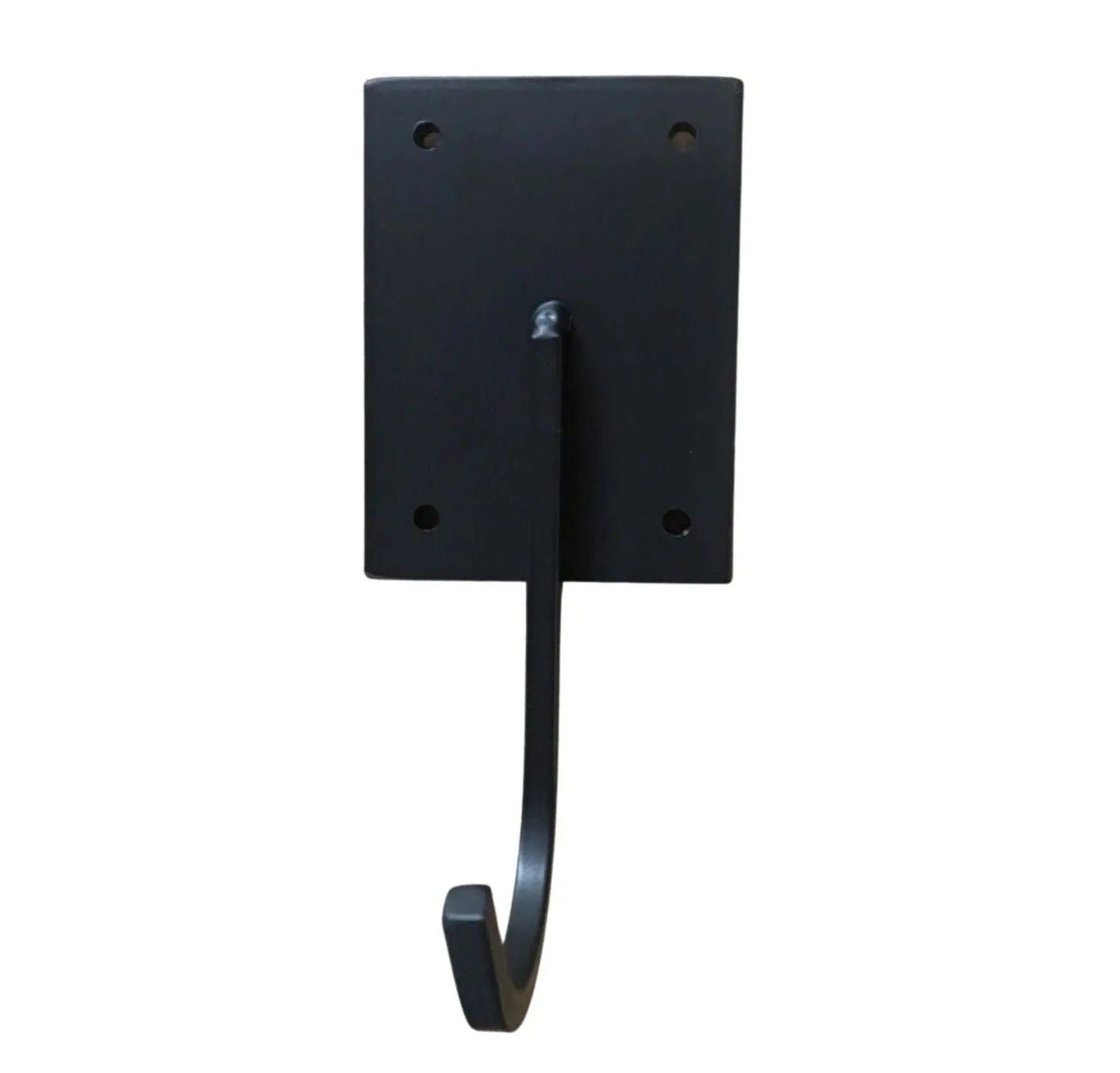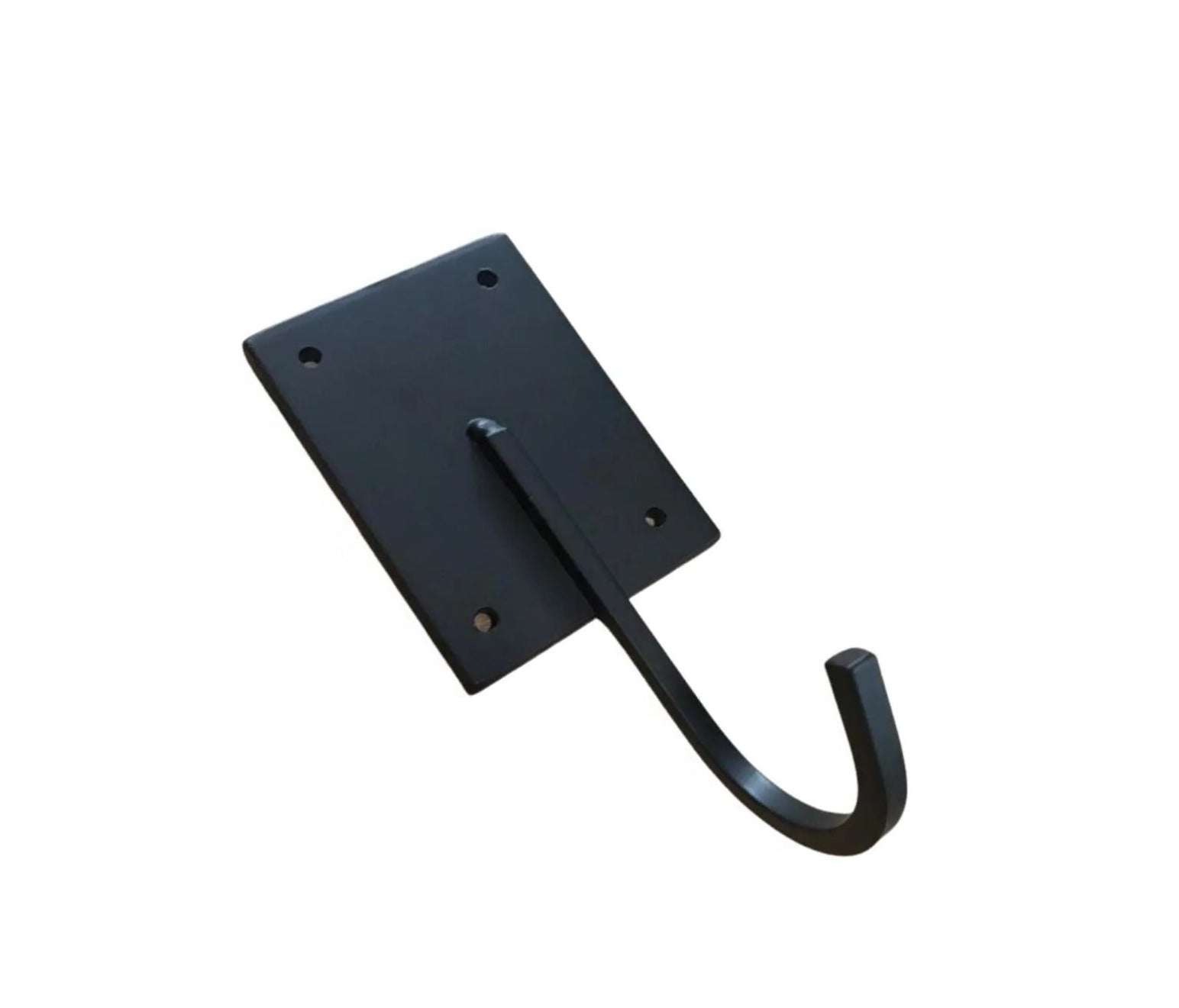 - 1/4 ” wide hook welded on a 4” x 3” backplate with pre-drilled holes for mounting.