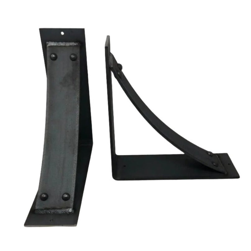 The Industrial Farm Co Utica Supports are a stylish 4 inch wide bracket with a 3" wide curved support bars with rivets added.