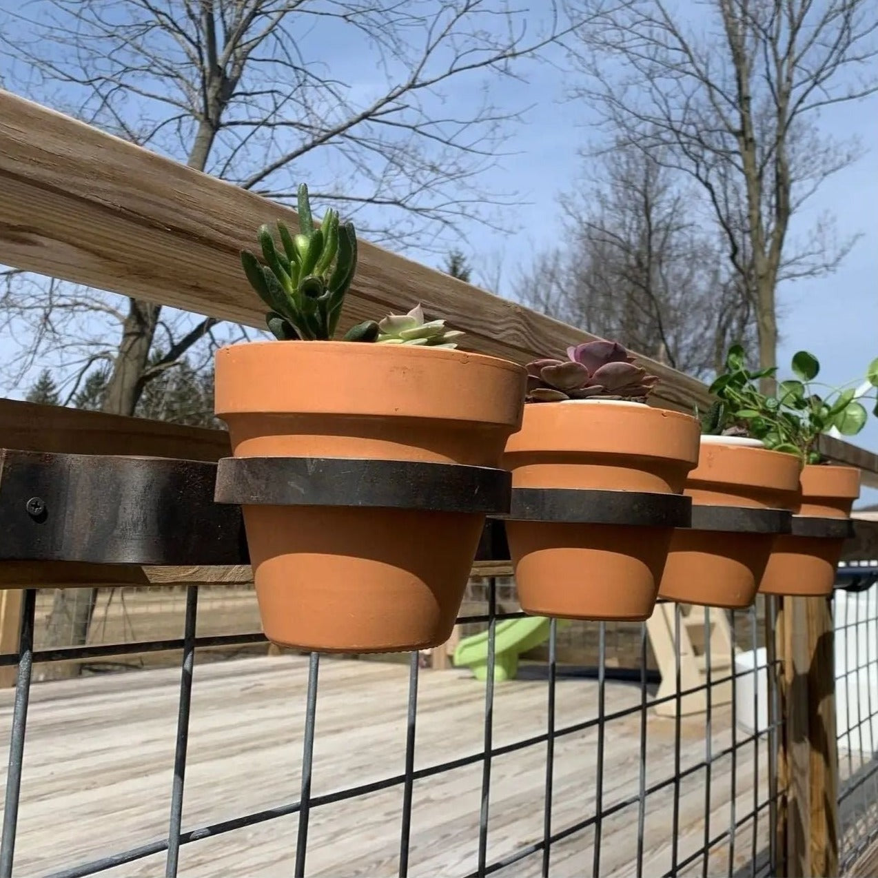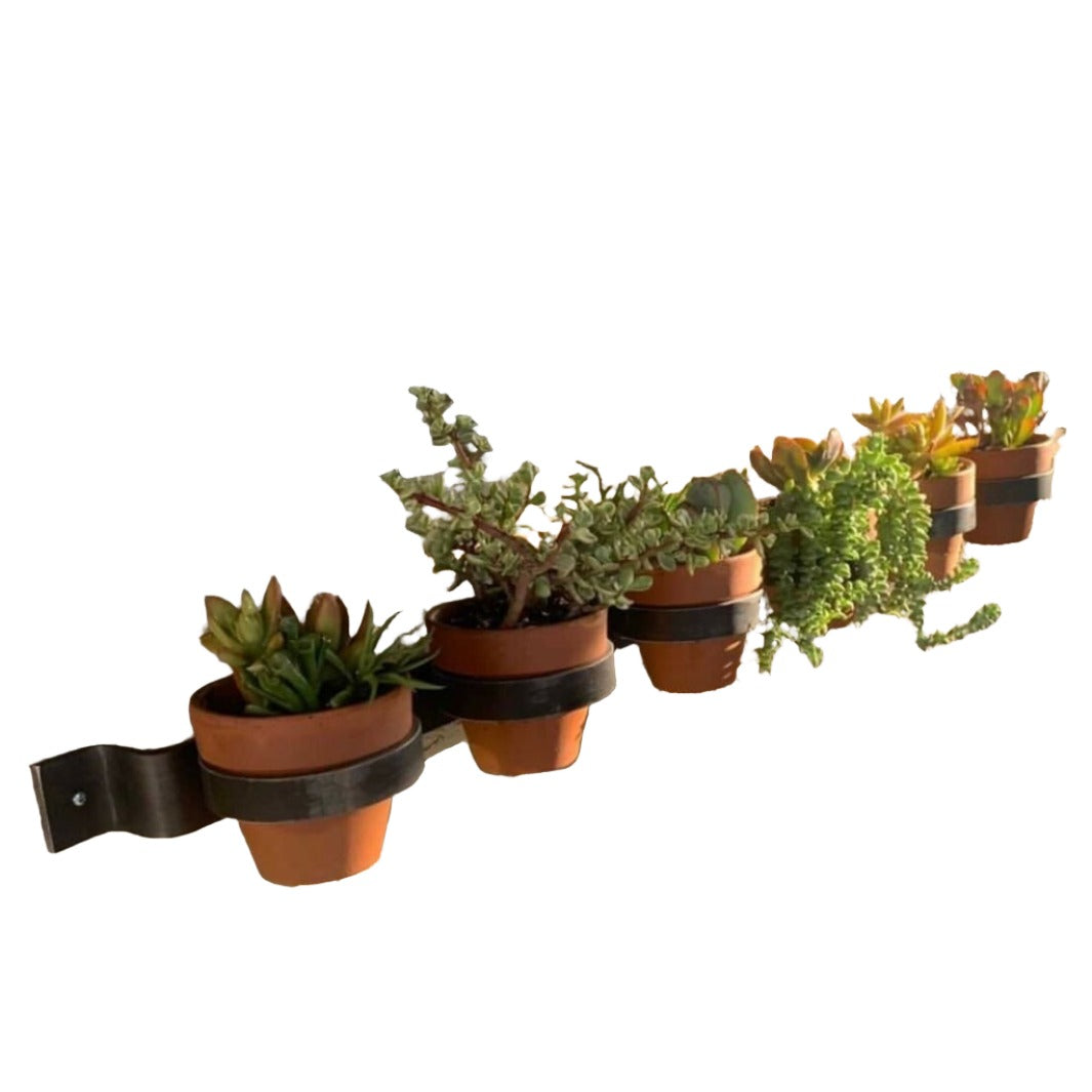Elevate your green thumb with our Yonkers Plant Holder, designed to lift your plants up and show them off in both indoor/outdoor spaces. Each unit is made to order and handcrafted from locally sourced steel to offer the finest quality and finish. We meticulously weld each round steel pot holder to a single 2-inch wide flat bar for simple installation and offer a variety of sizes, each with either 4 or 6 holders of varying circumferences (see sizes below). Tip: For a planter placed outdoors, select the raw, uncoated metal finish to achieve a more weathered, rustic look.